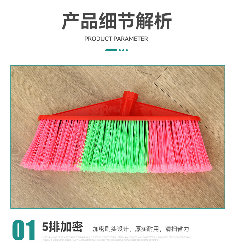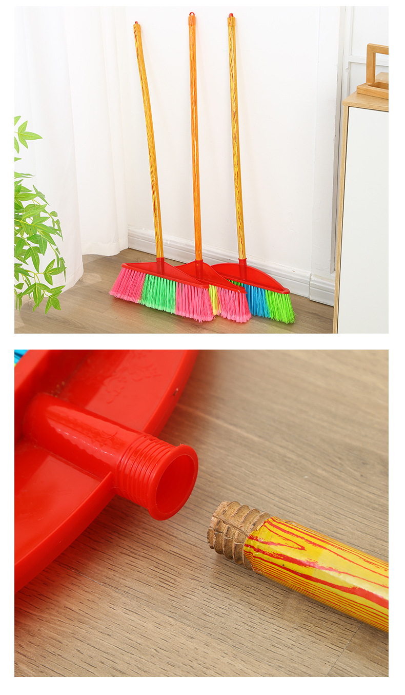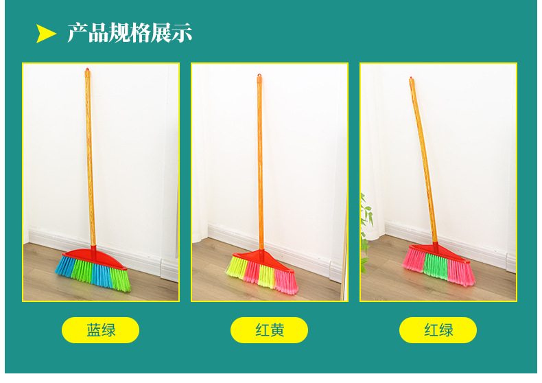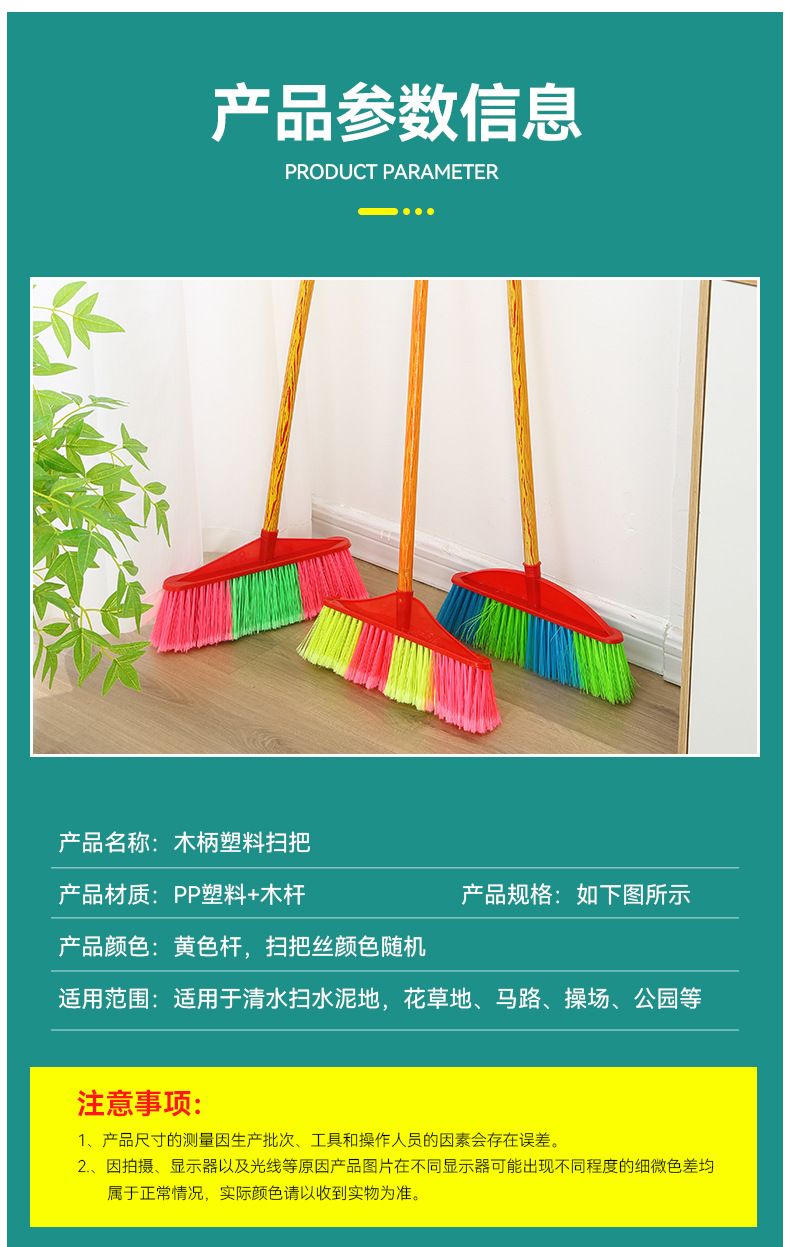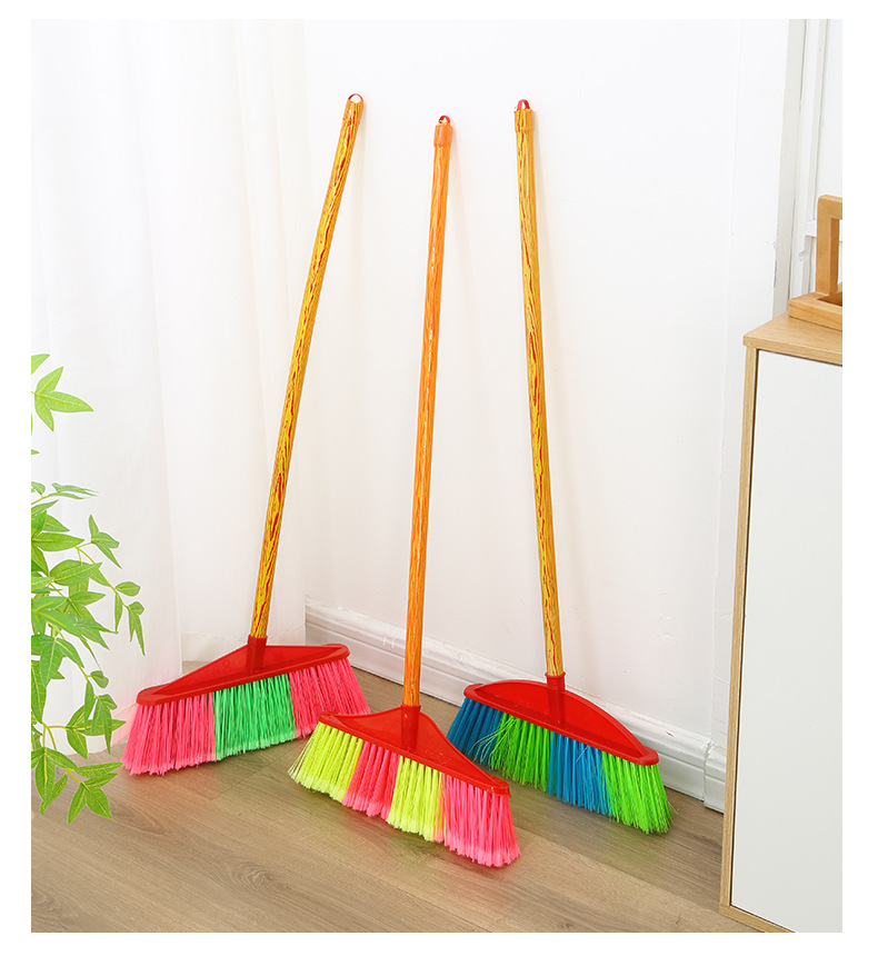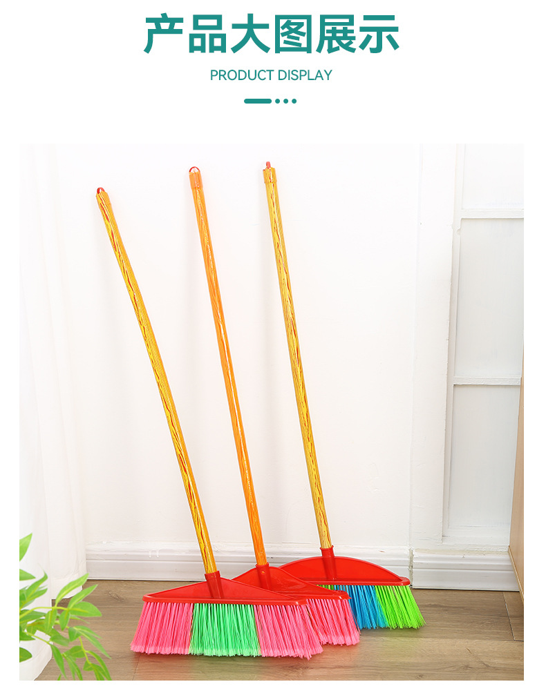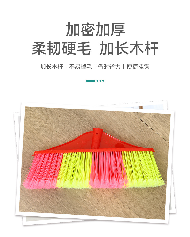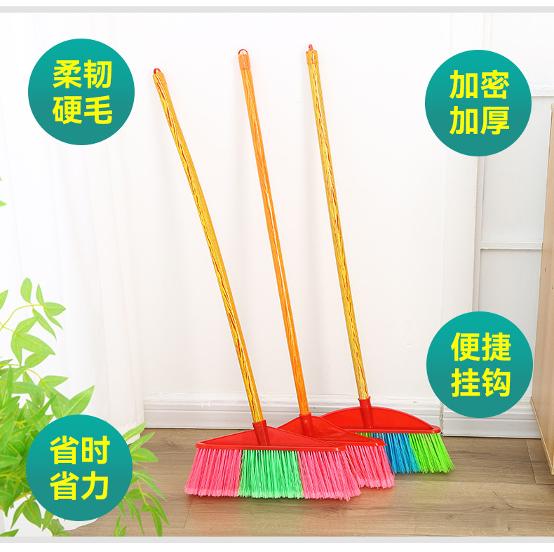 木柄塑料扫把批发扫地扫帚工厂家用清洁工具硬毛单个木柄塑料扫把