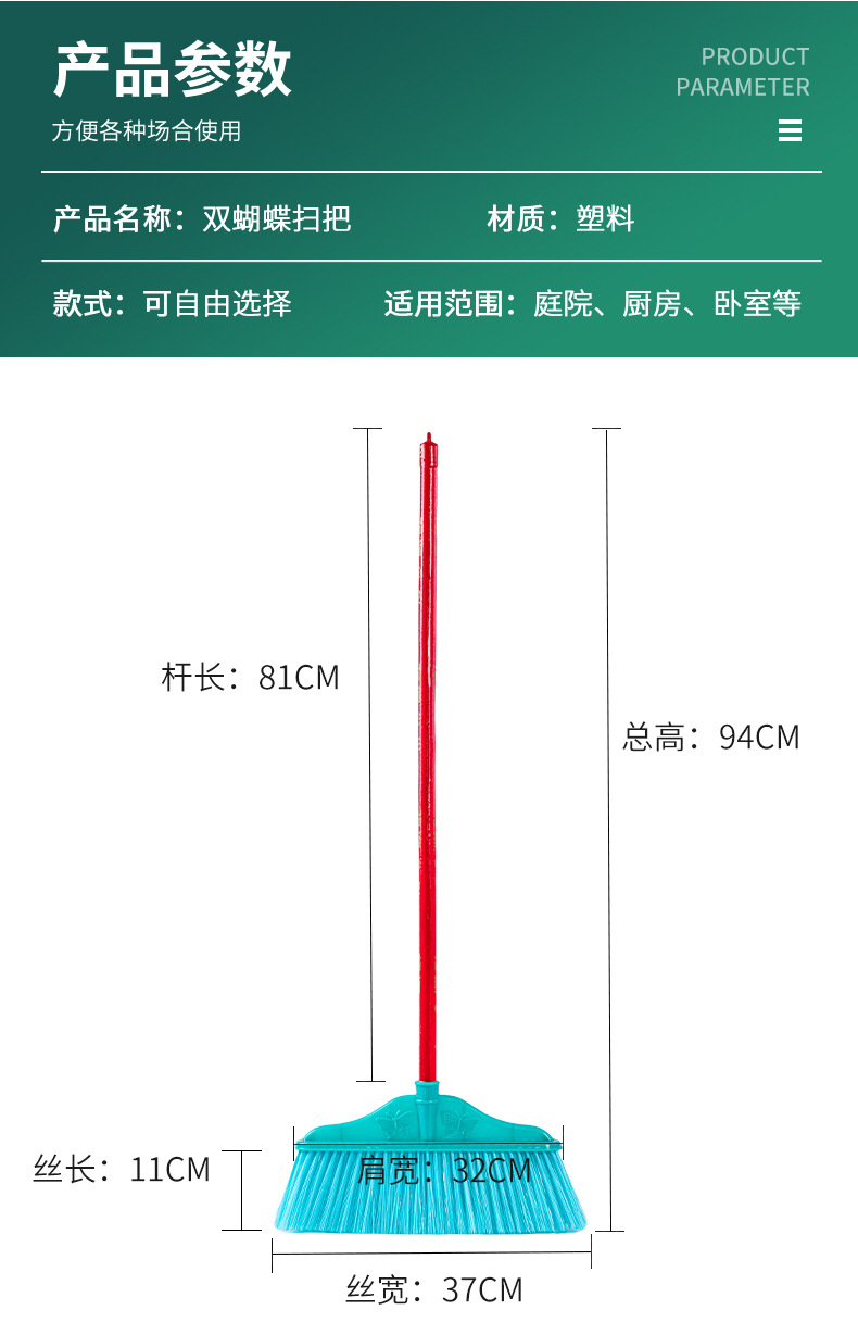 | double butterfly bright silk broom(双蝴蝶亮丝扫把) | USD $0.54 | 999 piece available |