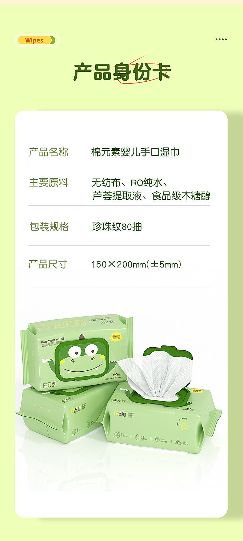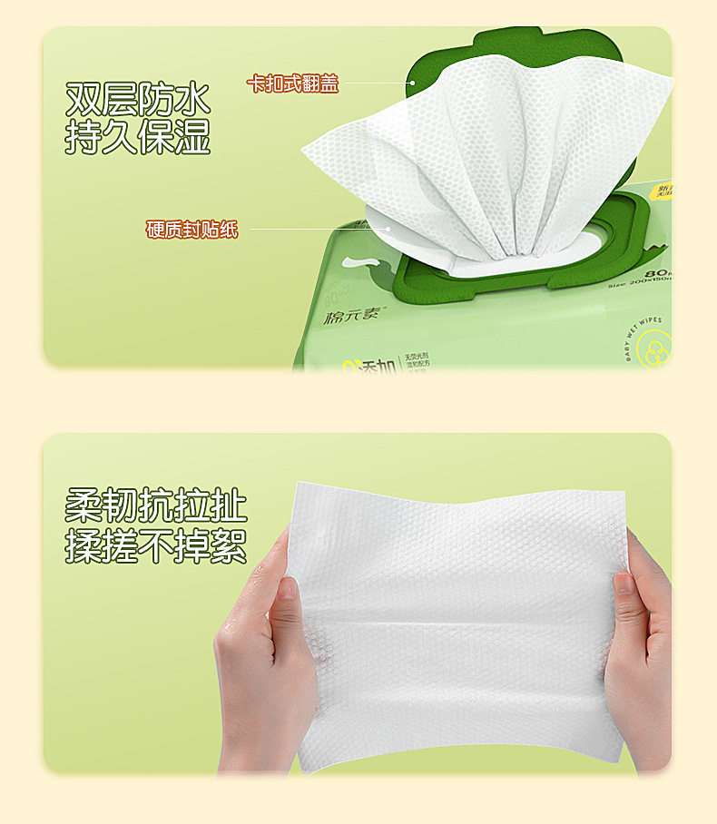 棉元素婴儿湿巾纸新生手口专用屁宝宝幼儿童80抽家庭实惠大包装