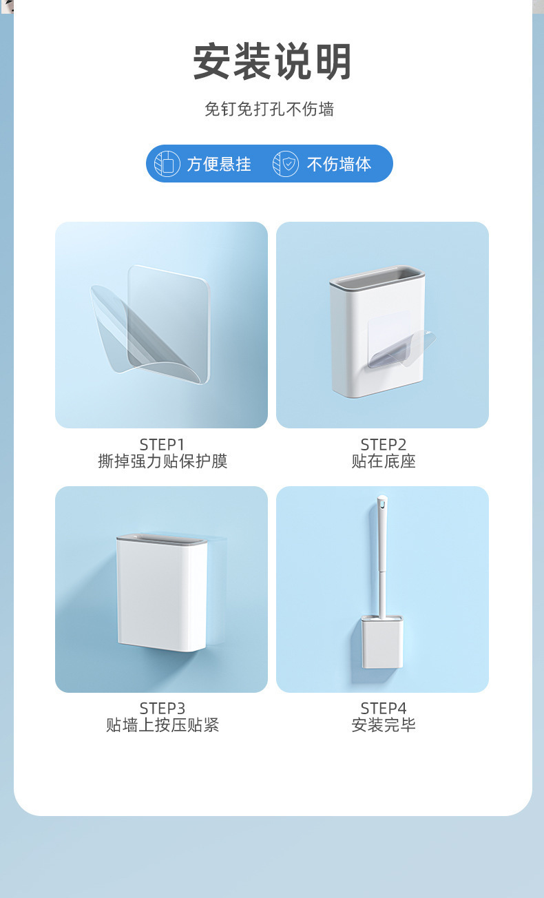 马桶刷无死角家用免打孔厕所硅胶刷子卫生间挂墙长柄坐便清 洁神