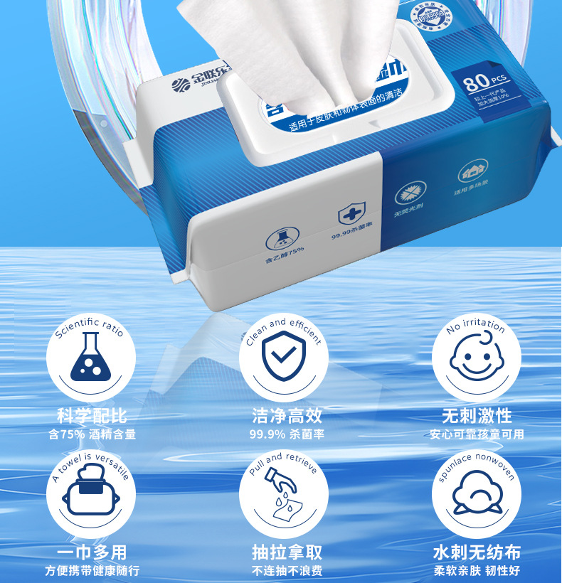 酒精湿巾75%乙醇家用杀菌湿纸巾大包80抽清洁消毒一次性卫生湿巾
