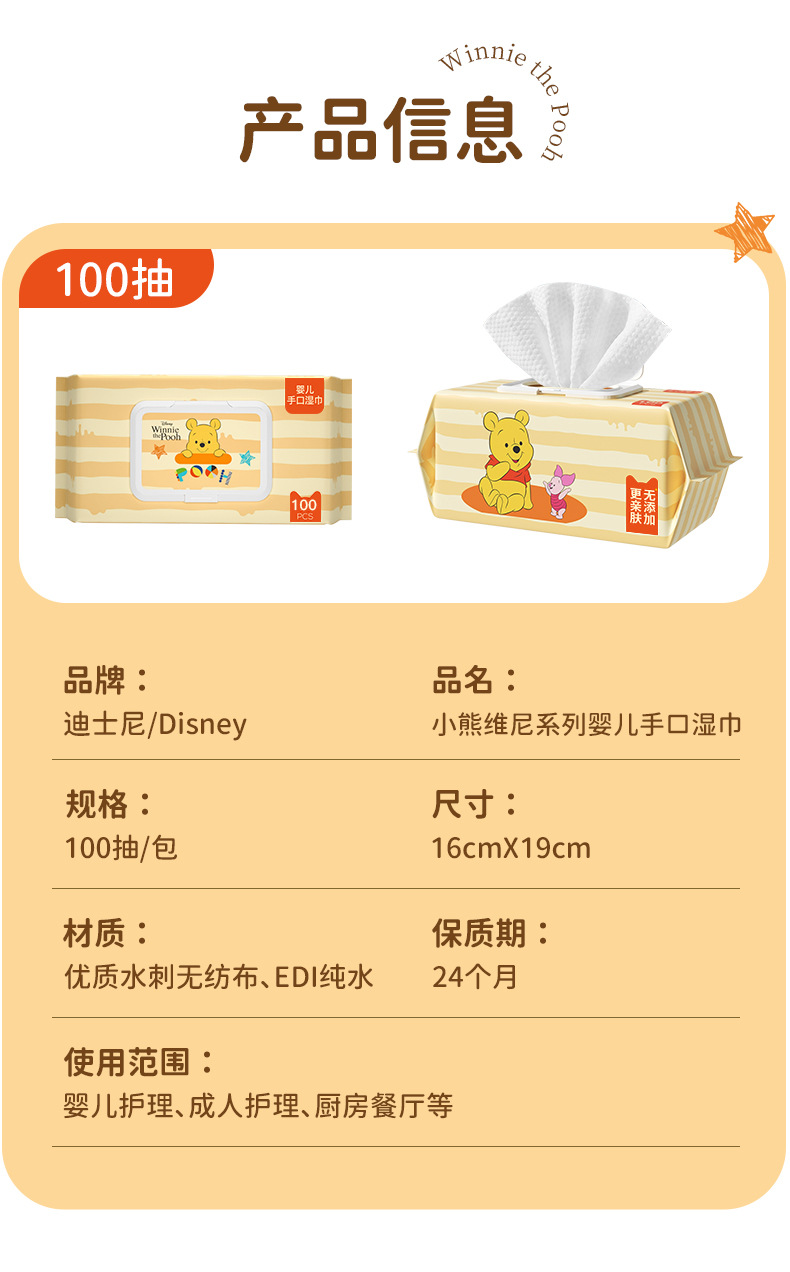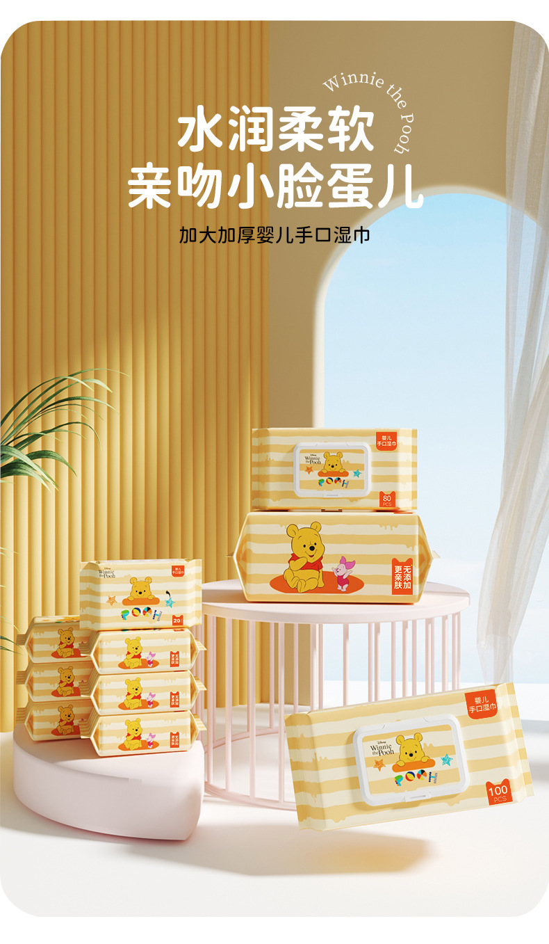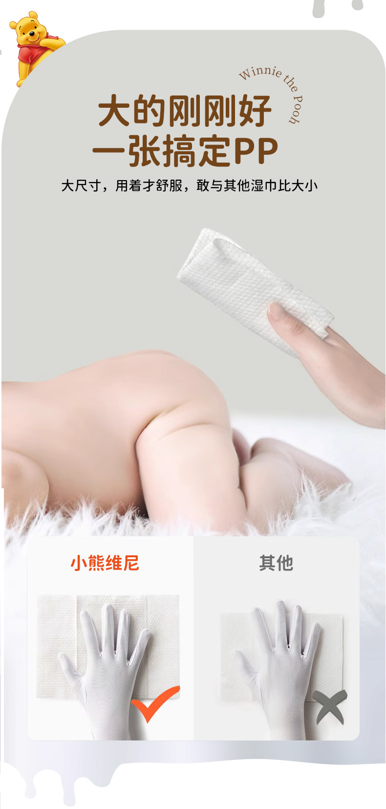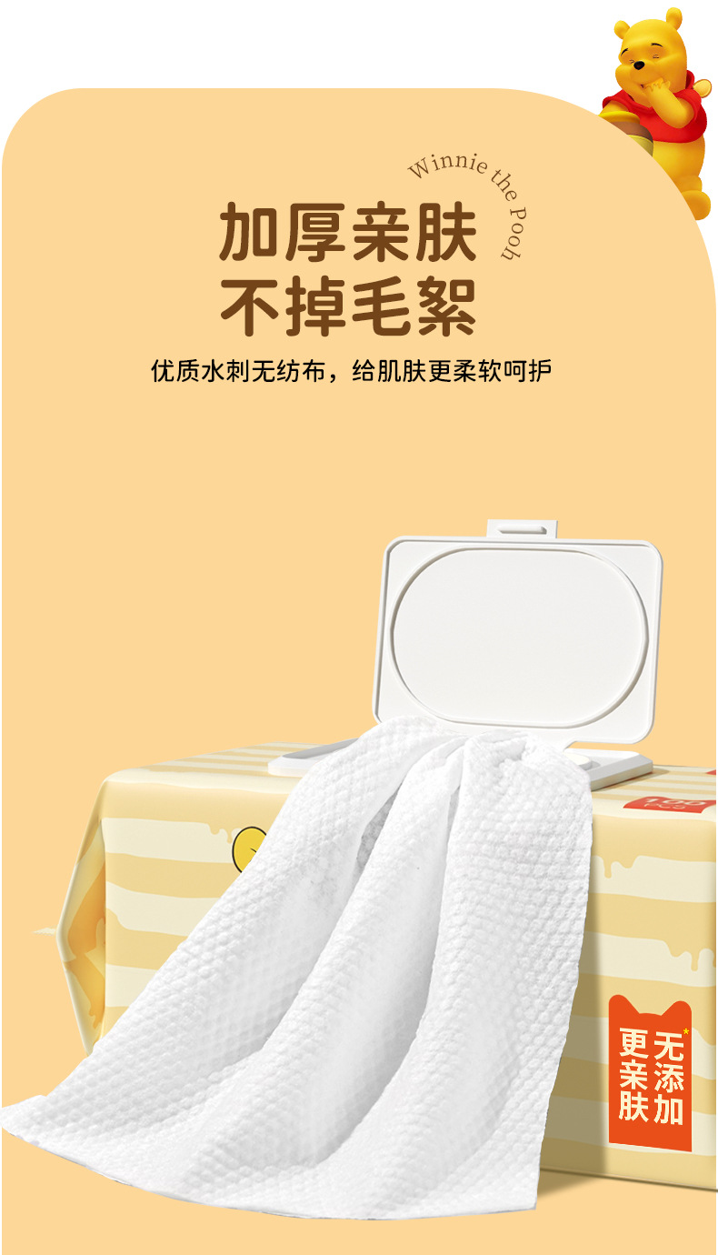 迪士尼维尼湿巾纯水爽肤湿纸巾100片婴儿手口屁专用湿巾家庭实惠