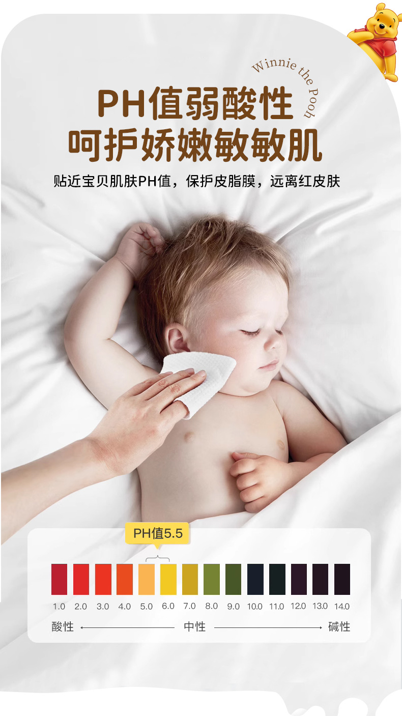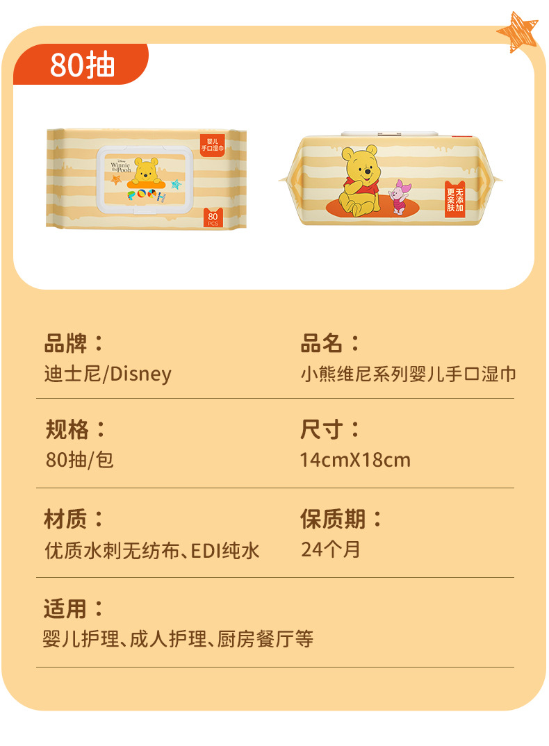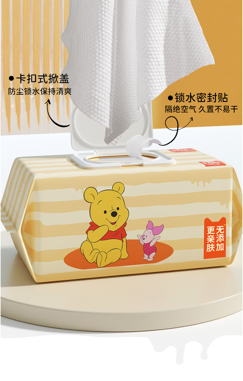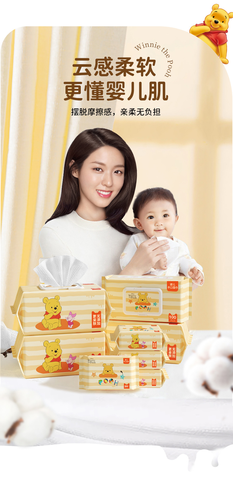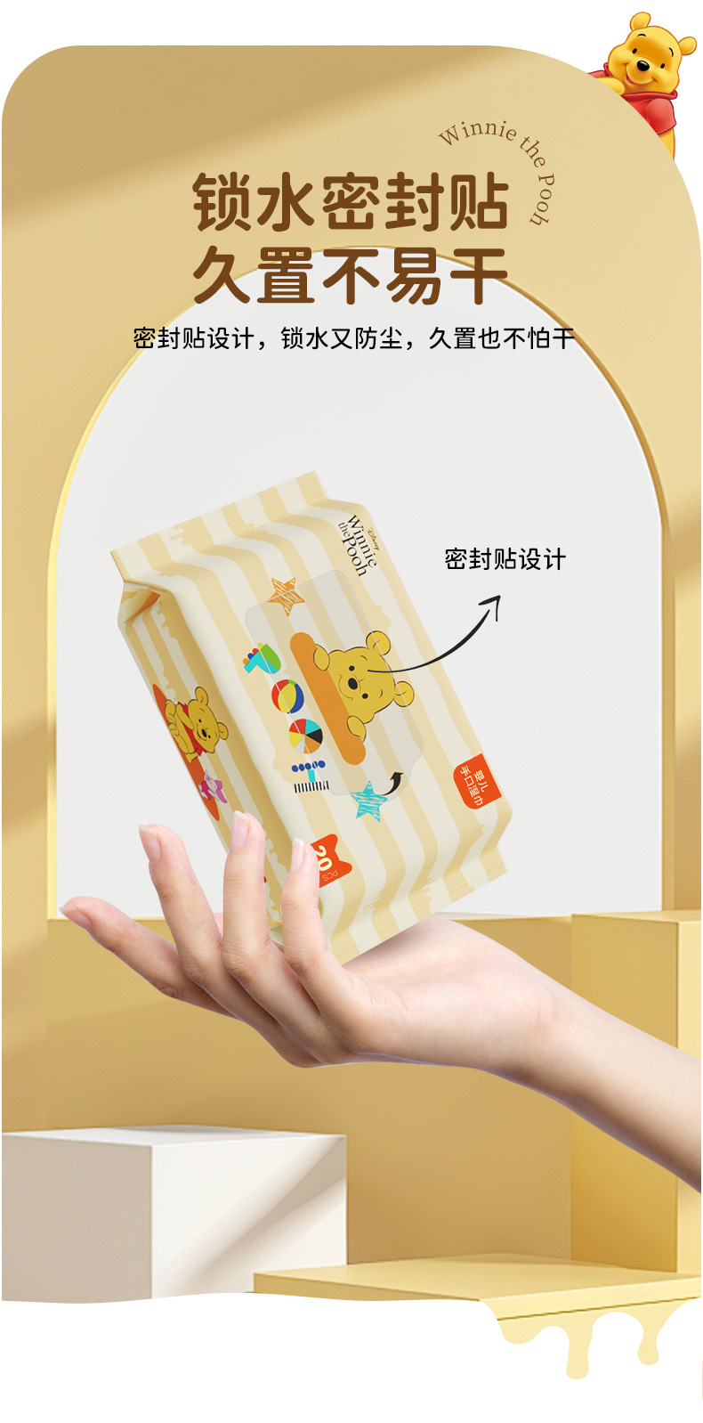 迪士尼维尼湿巾纯水爽肤湿纸巾100片婴儿手口屁专用湿巾家庭实惠