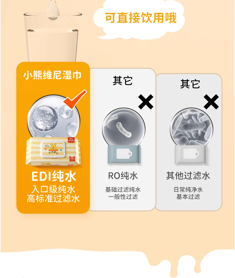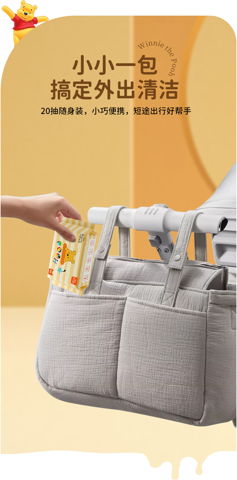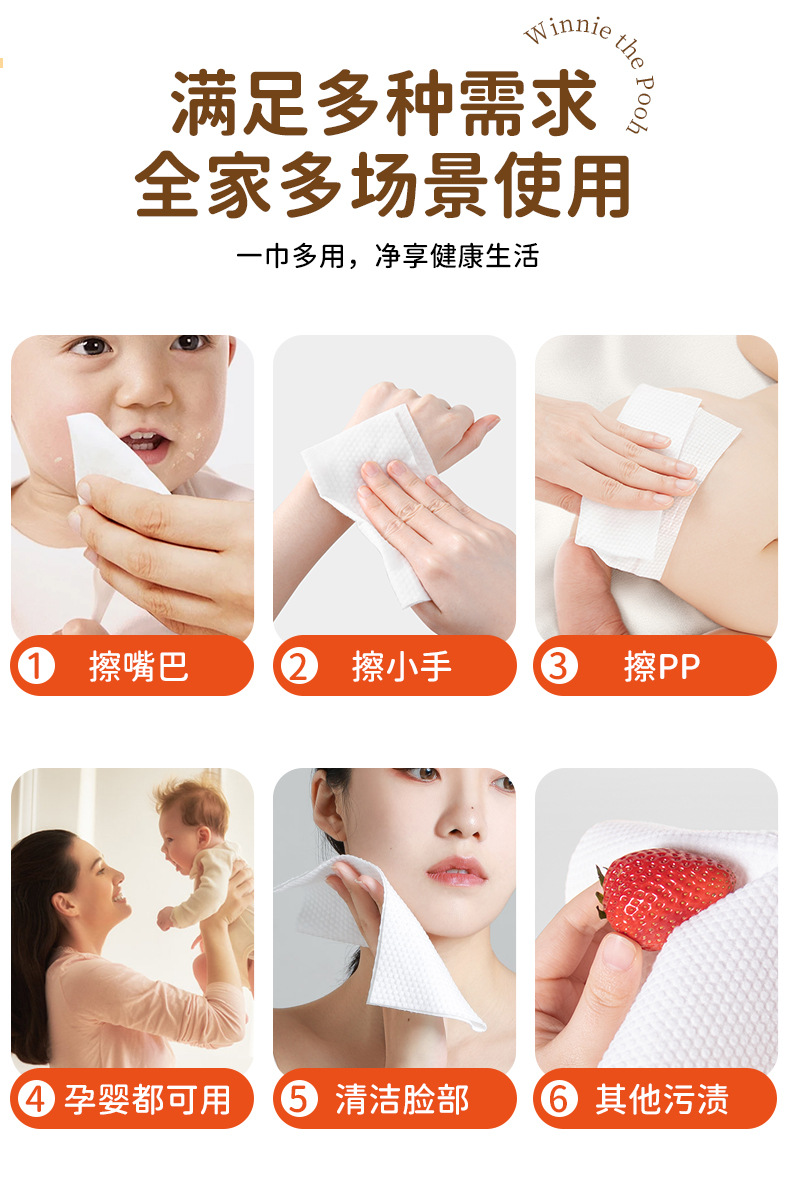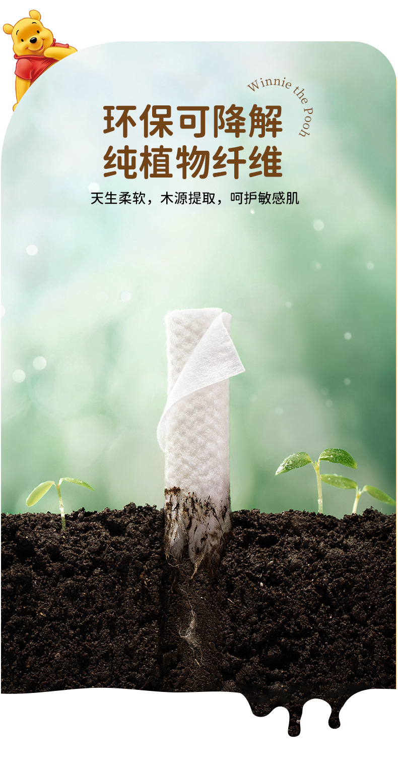 迪士尼维尼湿巾纯水爽肤湿纸巾100片婴儿手口屁专用湿巾家庭实惠