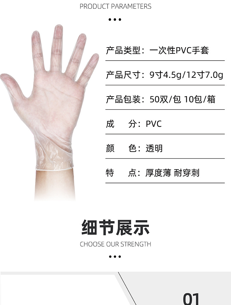 一次性PVC手套食品级防水防油餐饮美容家务清洁耐磨加厚手套批发