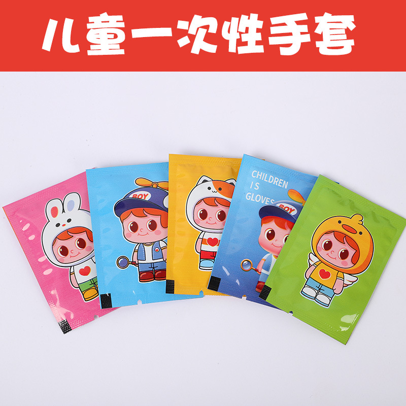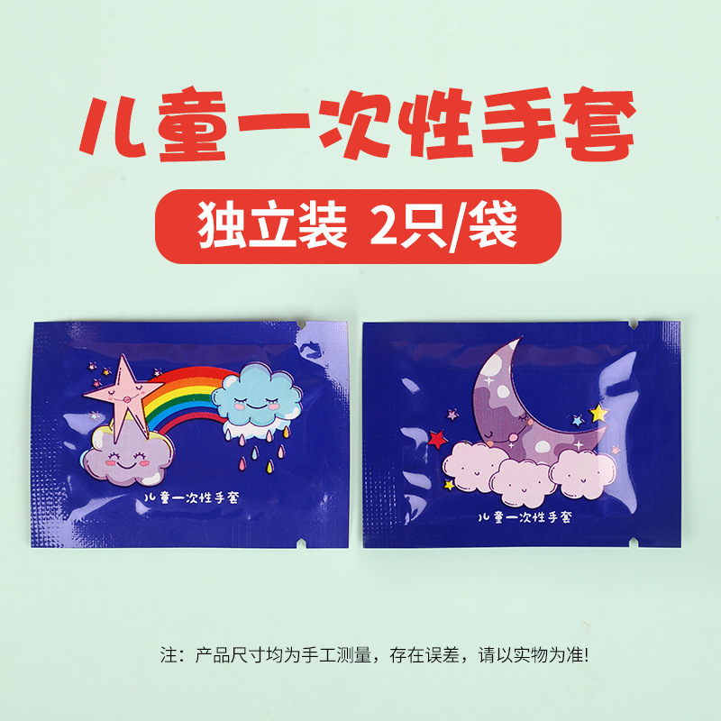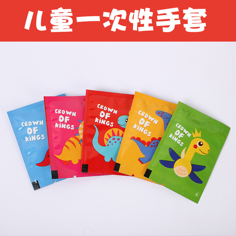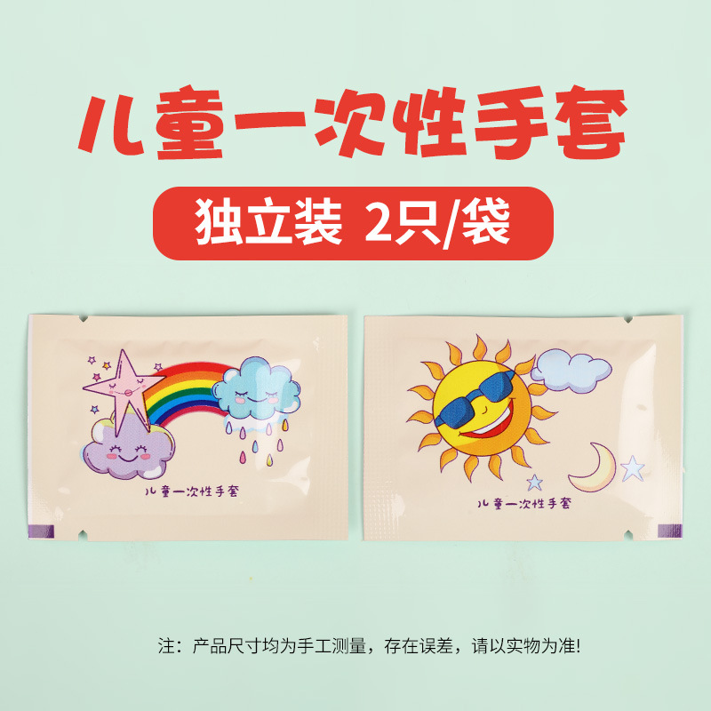 儿童一次性手套食品级加厚独立包装小孩宝宝可爱卡通家用塑料手套
