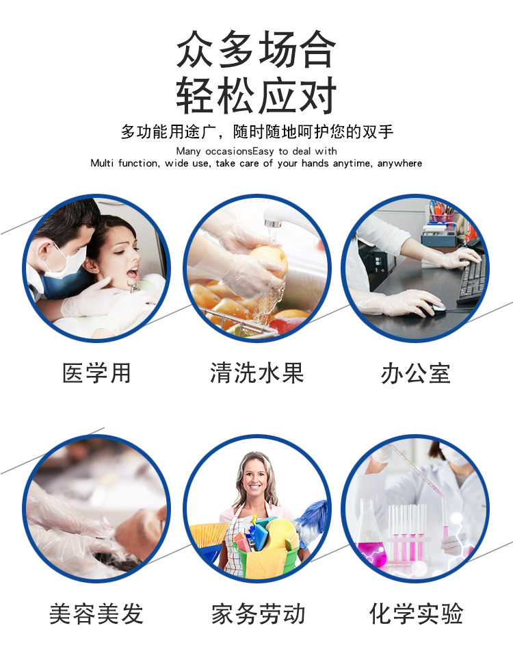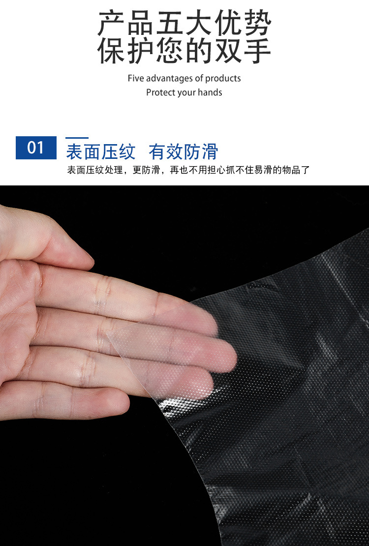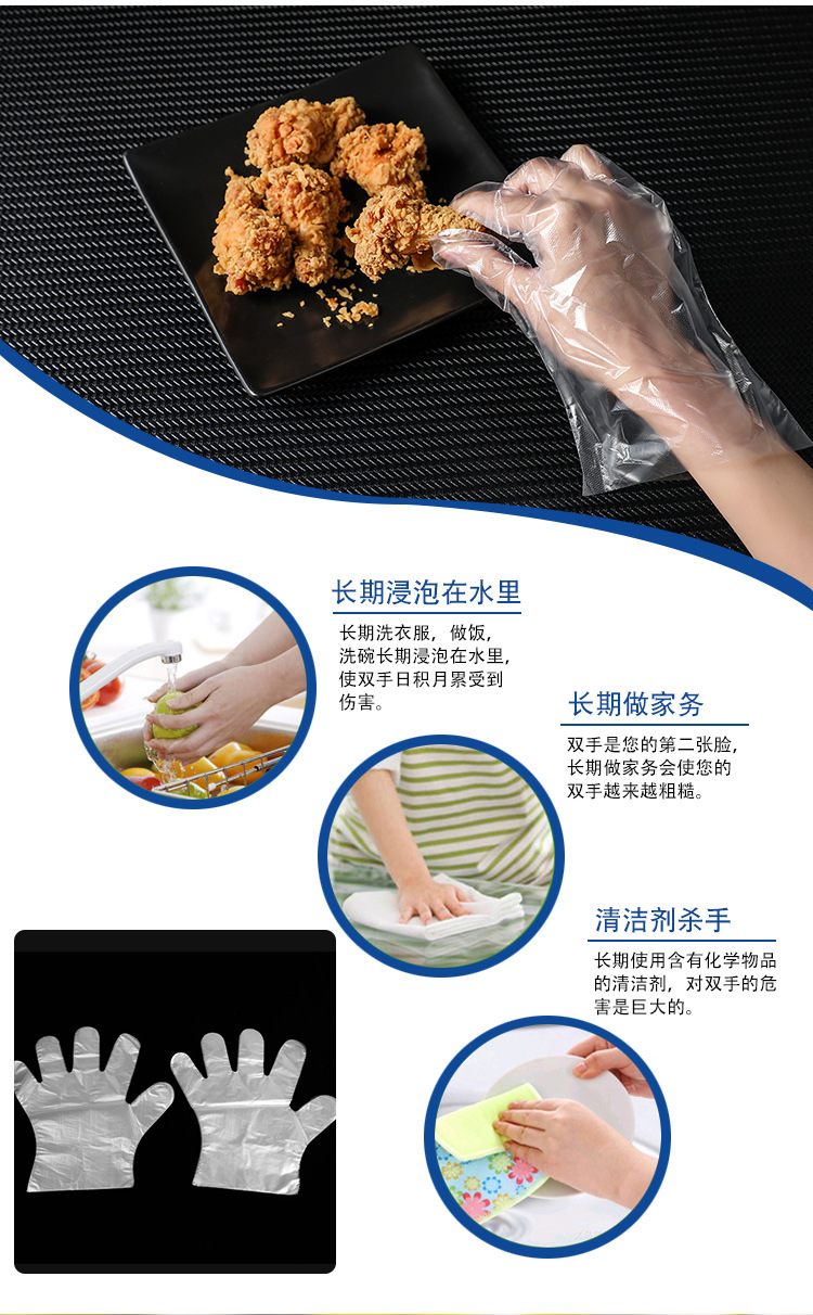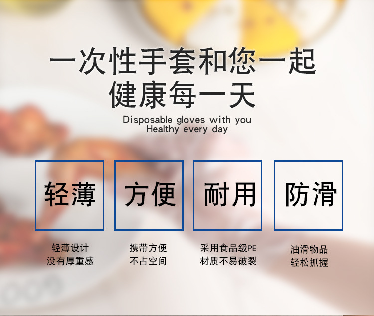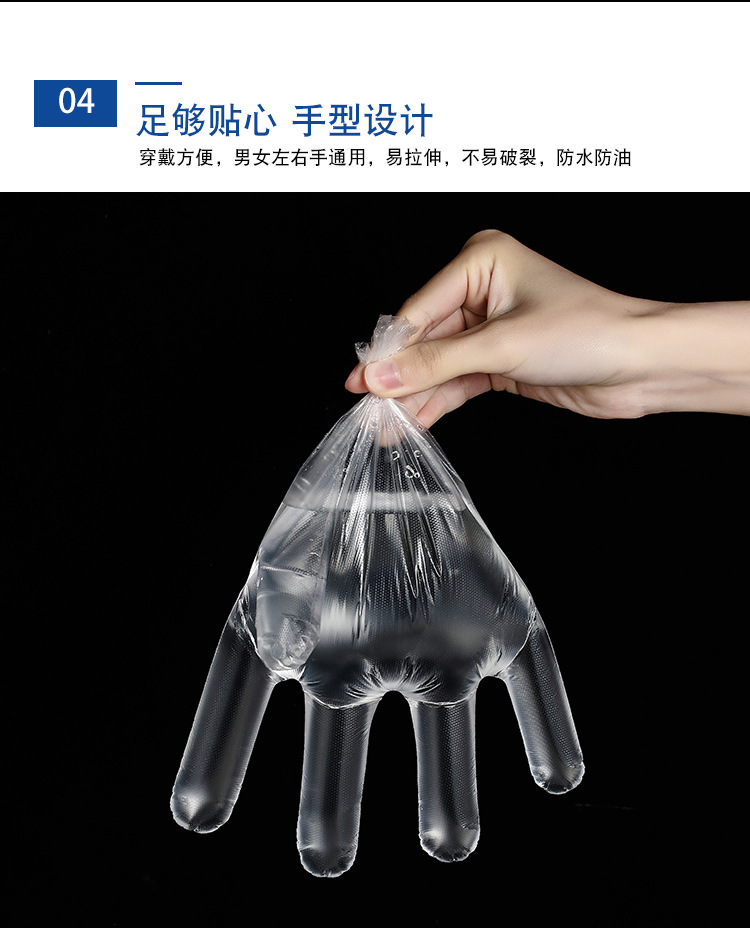 一次性PE手套透明无粉pe袋装餐饮家居清洁劳保手套100只/袋