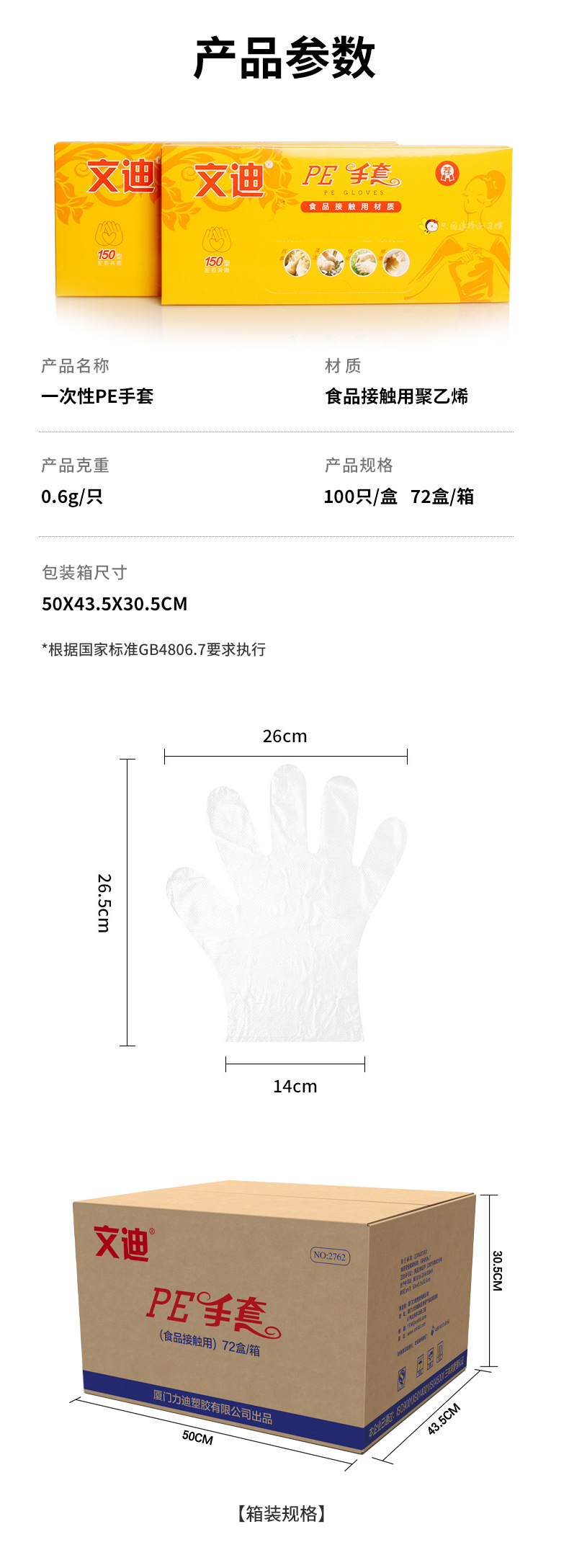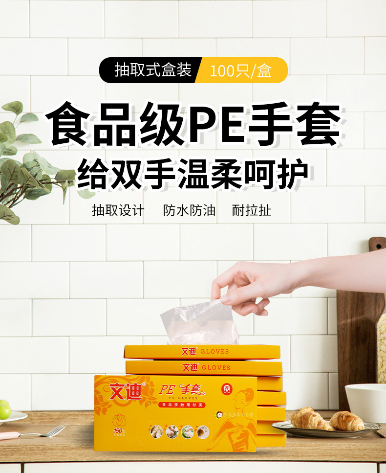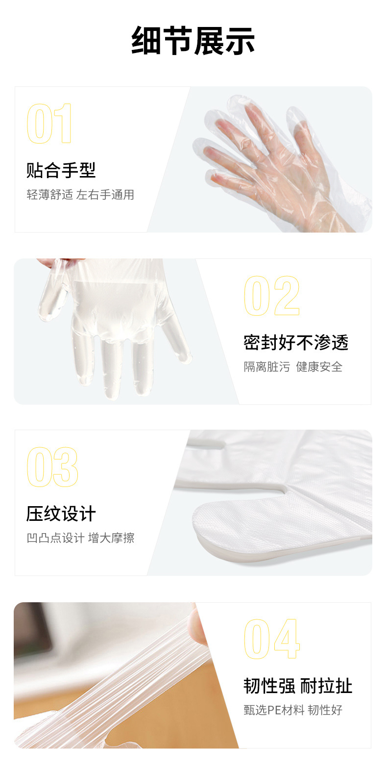 加厚pe食品级餐饮塑料薄膜家用透明盒装抽取式耐用清洁一次性手套