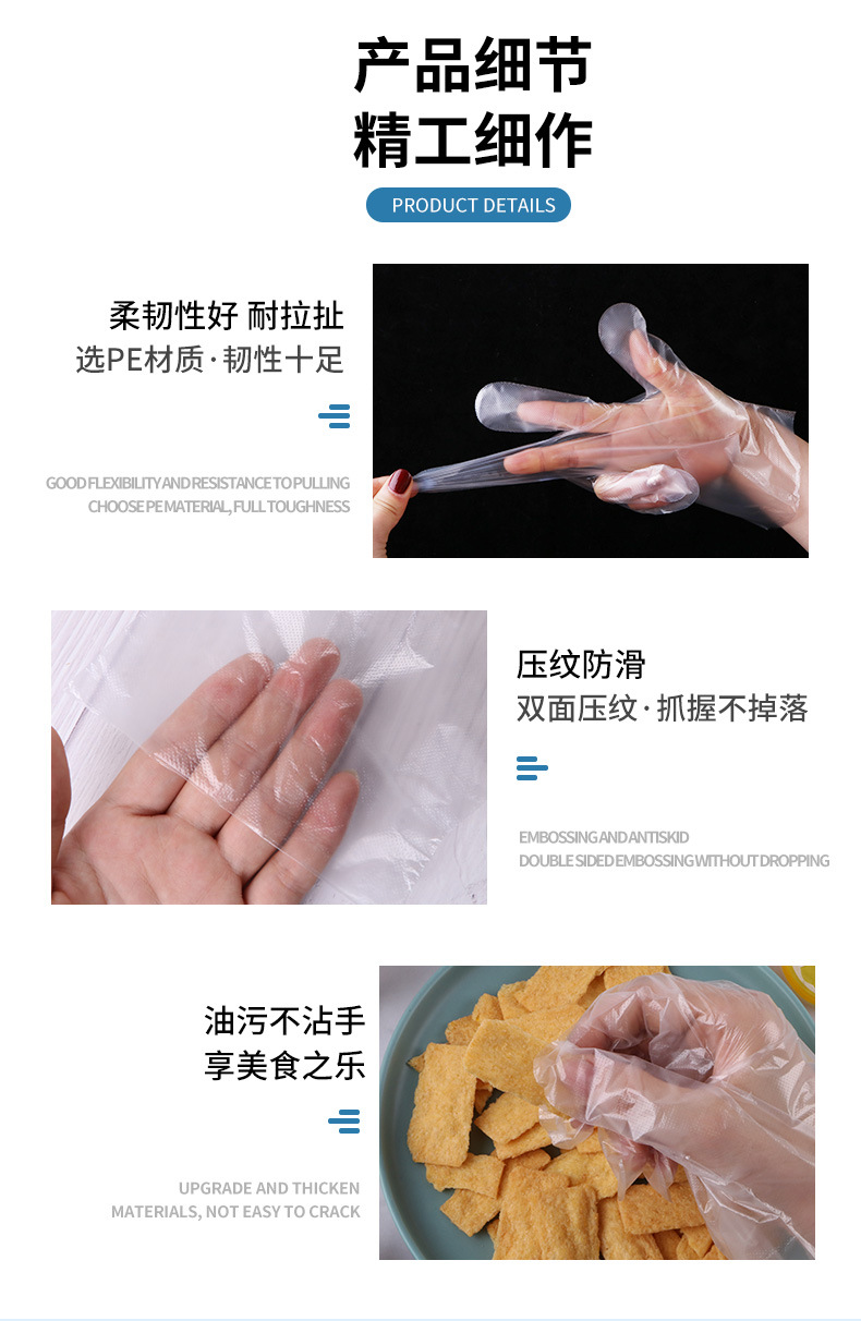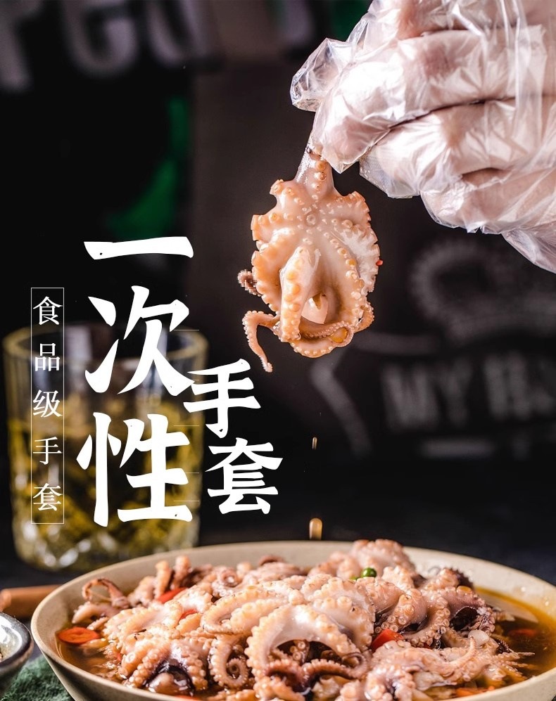 家用小包吃龙虾100只食品一次性手套耐用加厚PVC食品餐饮PE塑料H