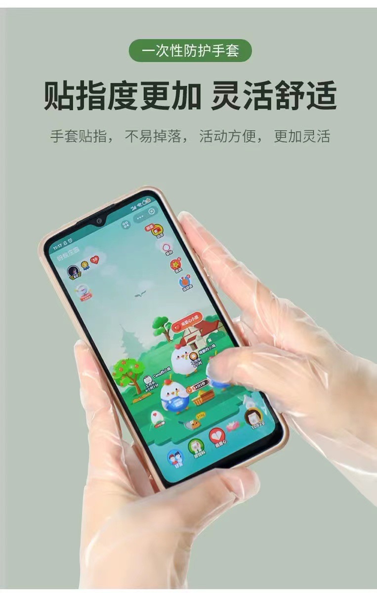 加厚一次性手套餐饮美发手膜食品吃龙虾透明塑料PE薄膜手套透明套