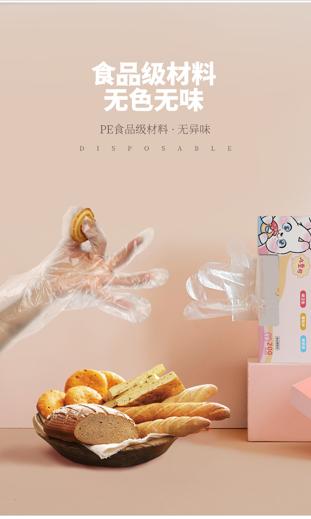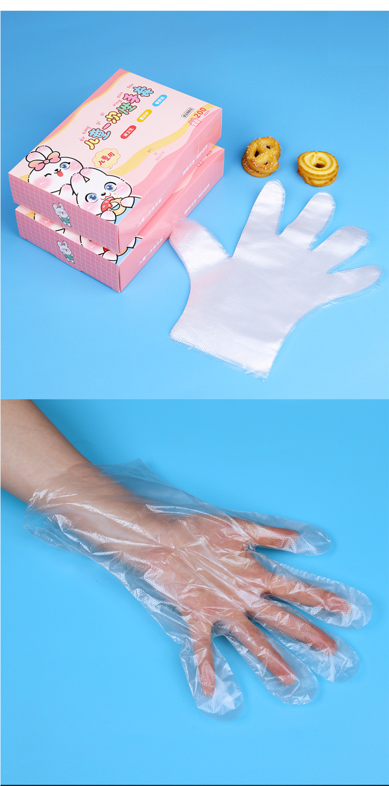 儿童一次性手套食品级小孩手抓饭pe塑料薄膜餐饮抽取式家用加厚