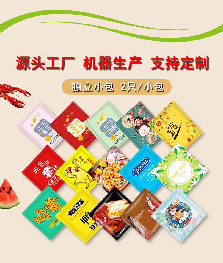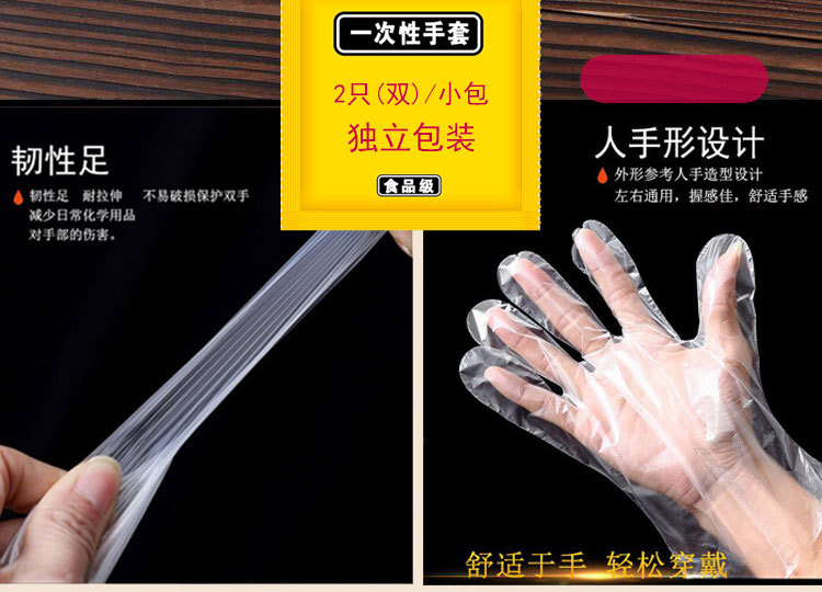 1包2只食品级一次性手套独包小包餐饮外卖披萨龙虾PE加厚商用手套