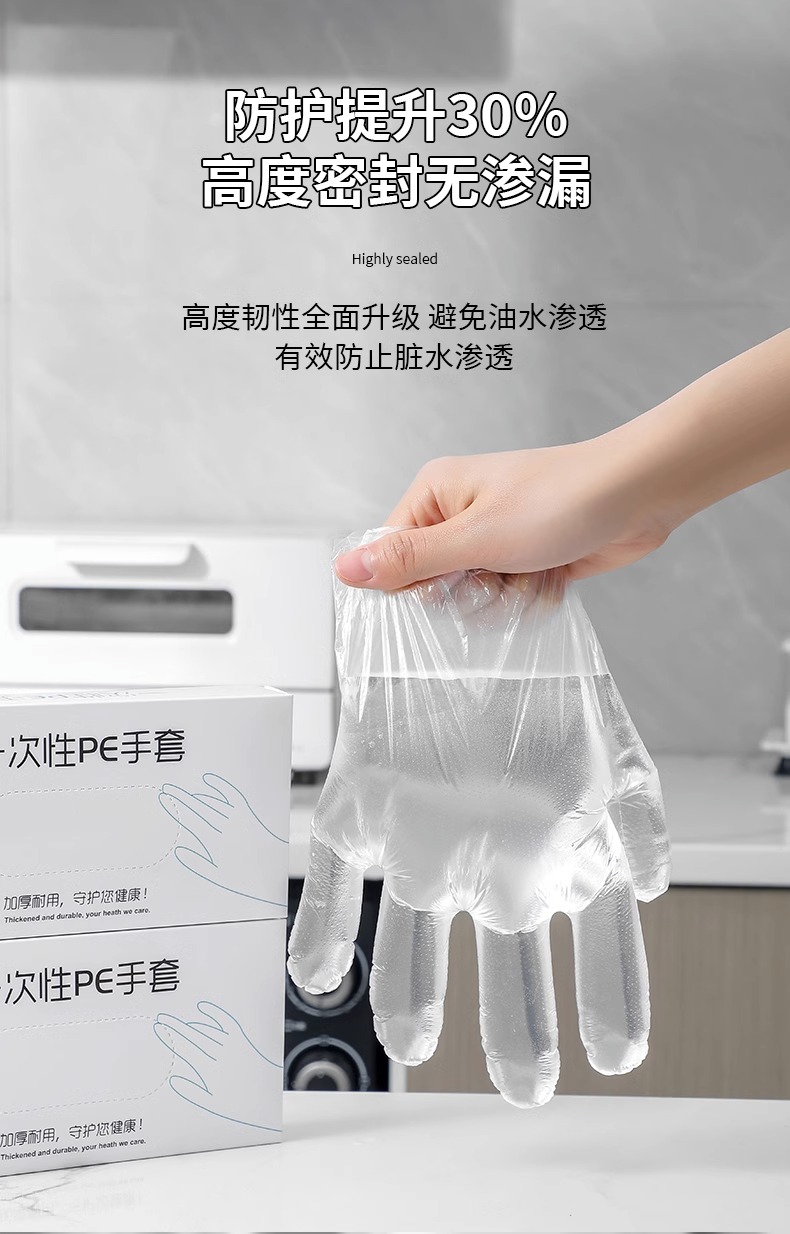 3MLE一次性手套食品级PE塑料商用餐饮透明加厚耐磨家用薄膜盒