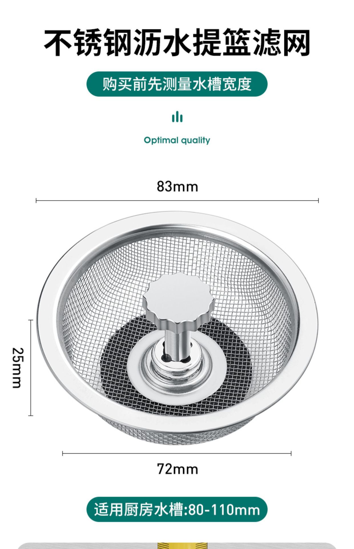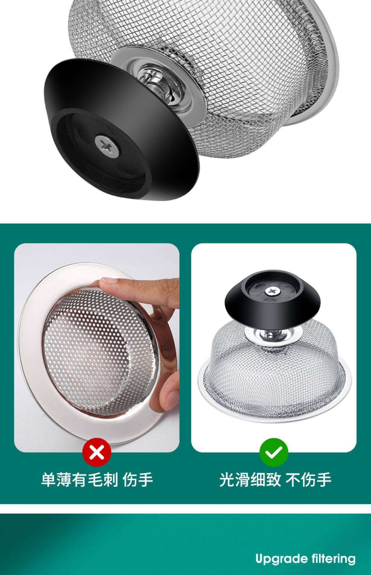 厨房漏水槽过滤网洗菜盆洗碗水池下水道垃圾防堵盖不锈钢大号通用