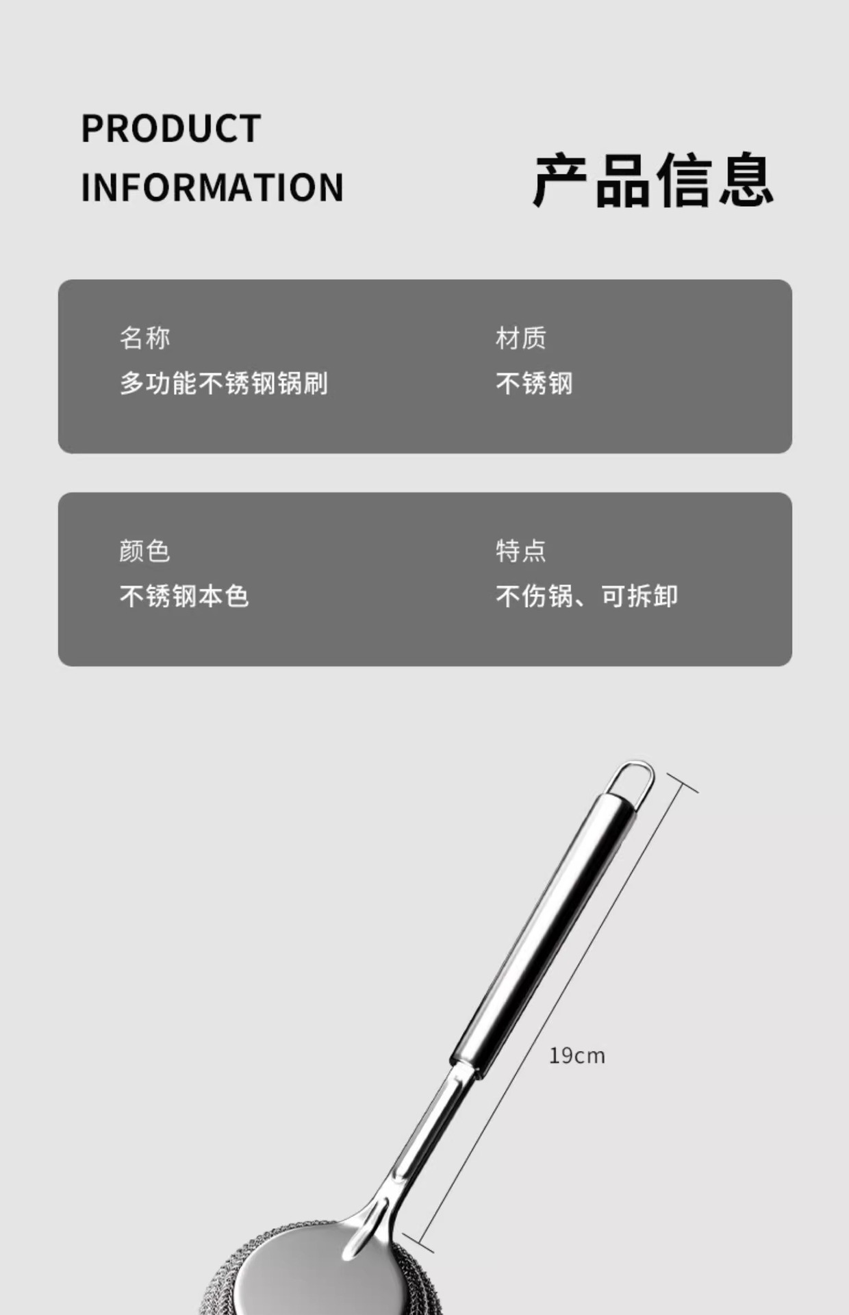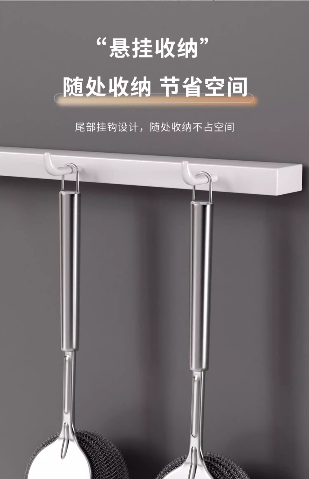 新款不锈钢锅刷厨房专用洗锅钢丝球刷长柄洗碗清洁刷子刷锅神器