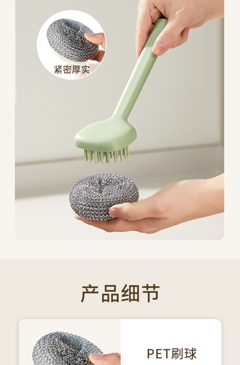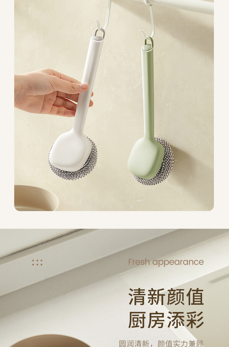 长柄洗锅刷洗碗清洁刷子厨房专用不锈钢钢丝球灶台刷子刷锅神器