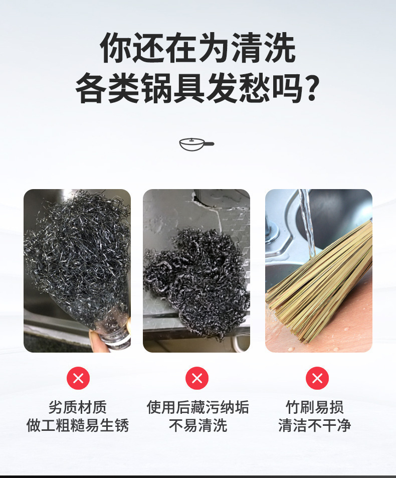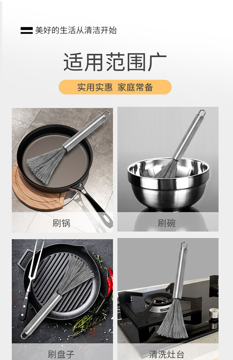 爆款304刷锅长柄厨房家用清洁刷铁锅不锈钢锅刷洗碗洗锅刷子