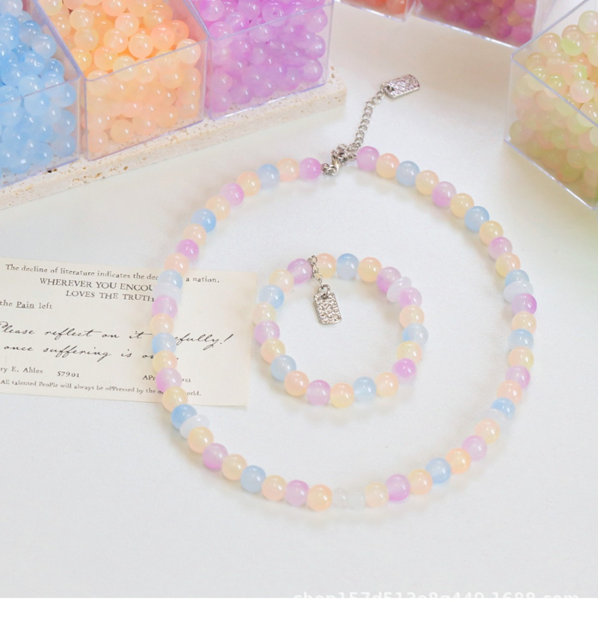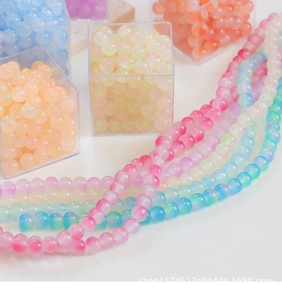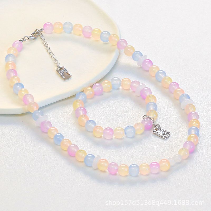 8MM防玉石珠玻璃渐变双色圆珠子DIY手链项链玉料串珠手串散珠批发