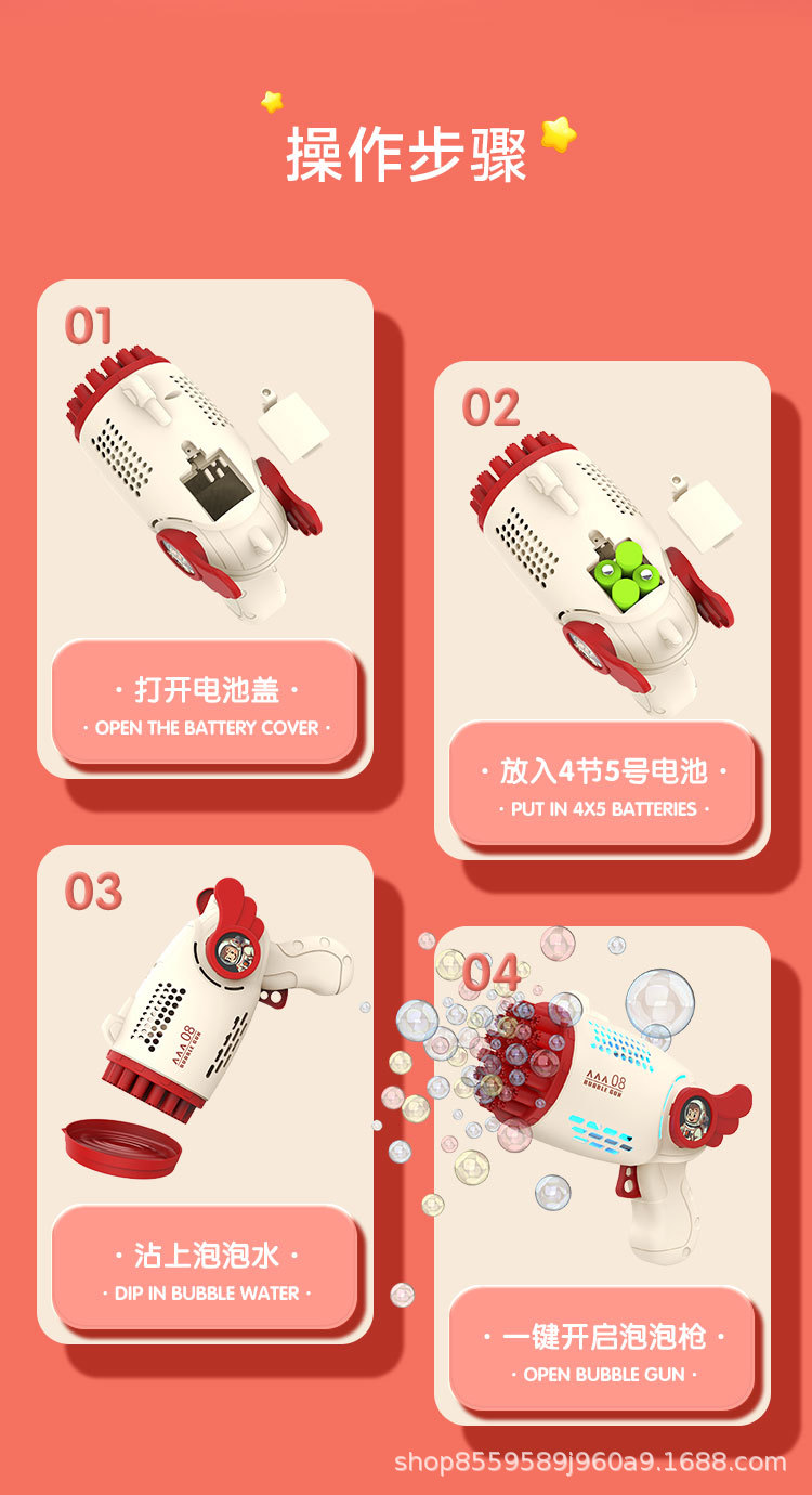 全自动泡泡机外销 加特林泡泡枪 儿童玩具灯光手持泡泡棒地摊热销