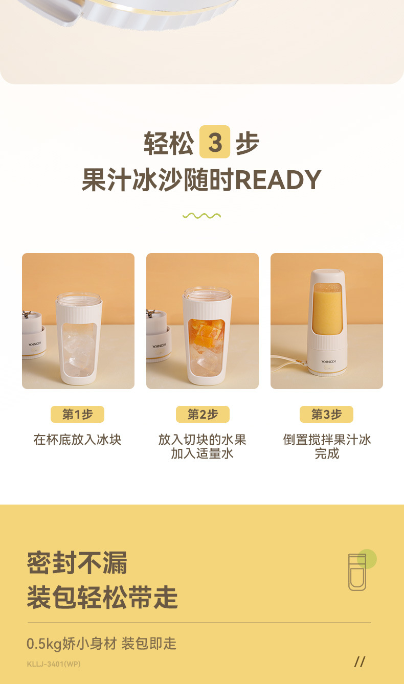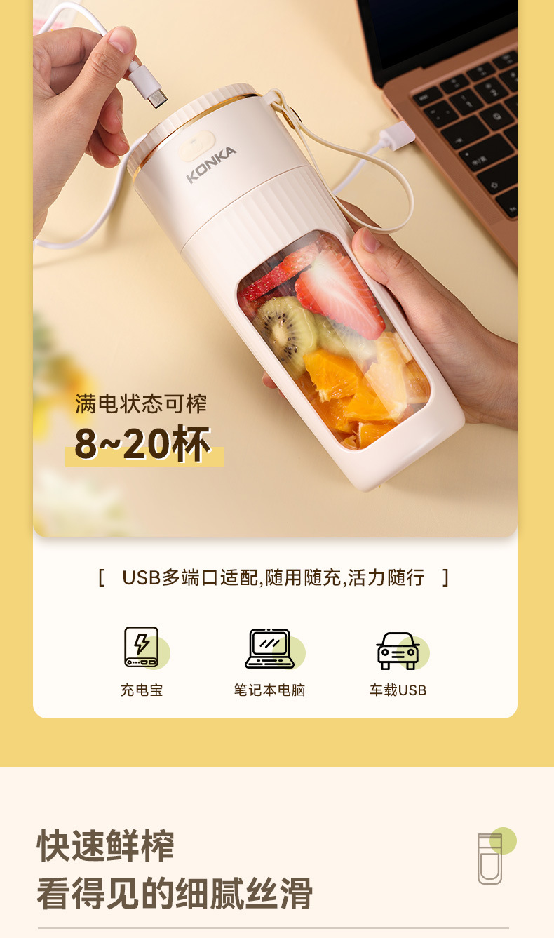 康佳榨汁机家用小型便携式水果榨汁杯户外多功能电动果汁机跨境