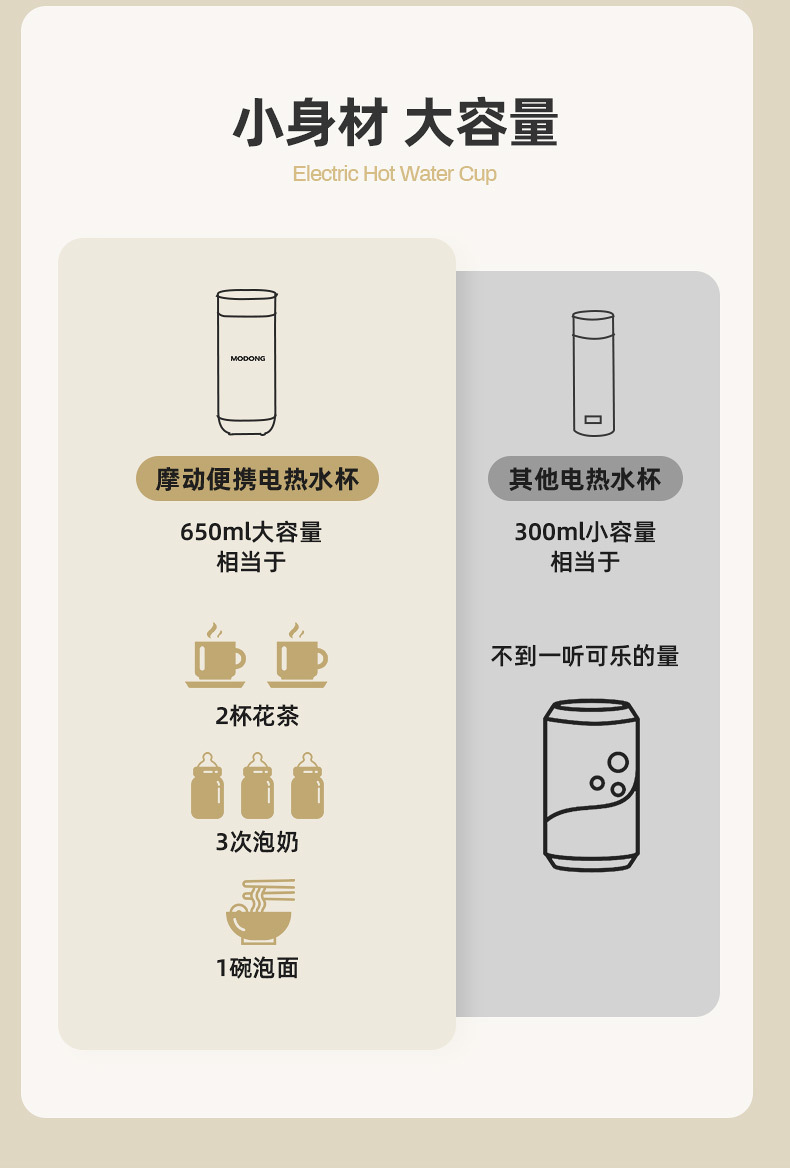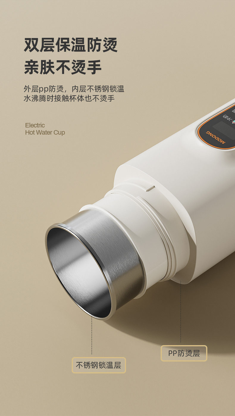 摩动电热水杯小型烧水杯旅行便携式烧水壶加热保温杯电热加热水杯