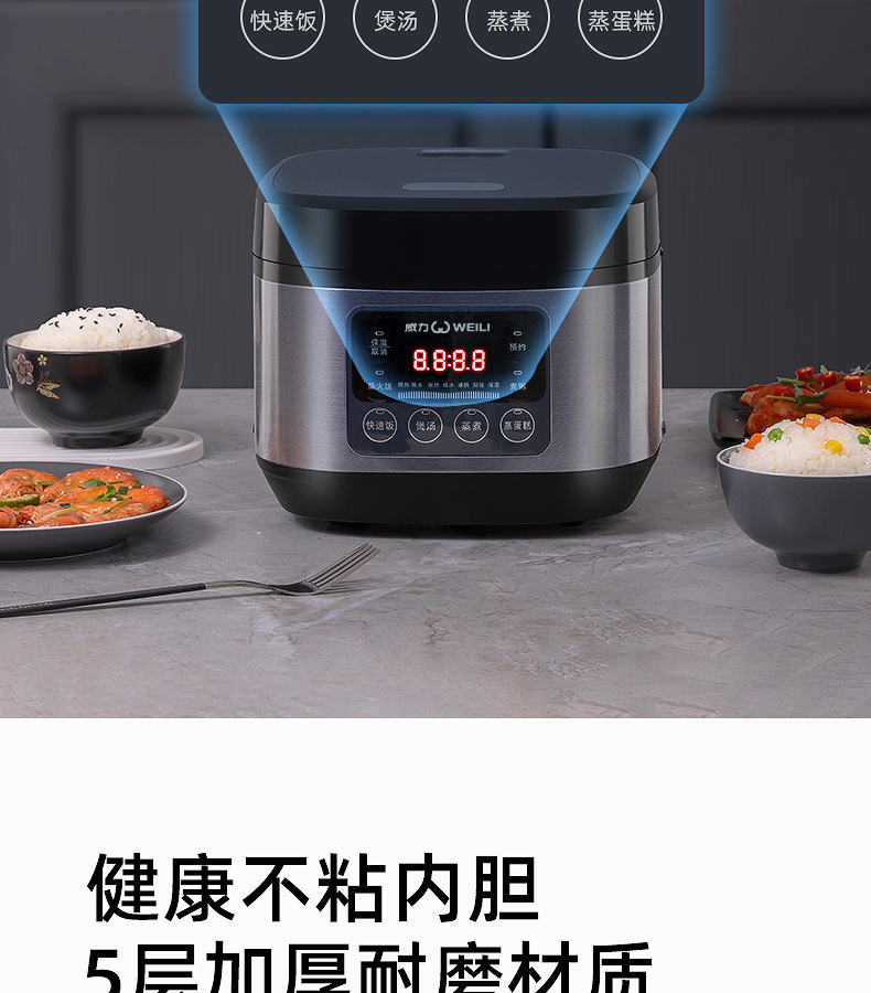 代发威力3-5L电饭煲1-6人家用智能预约定时不粘锅礼品批发电饭锅