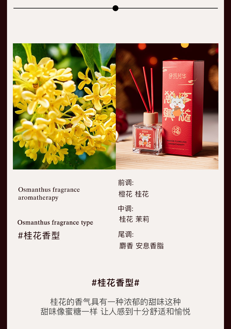伊览芳华龙年限定万事兴龙新年红室内无火香薰抖音爆款香薰除异味