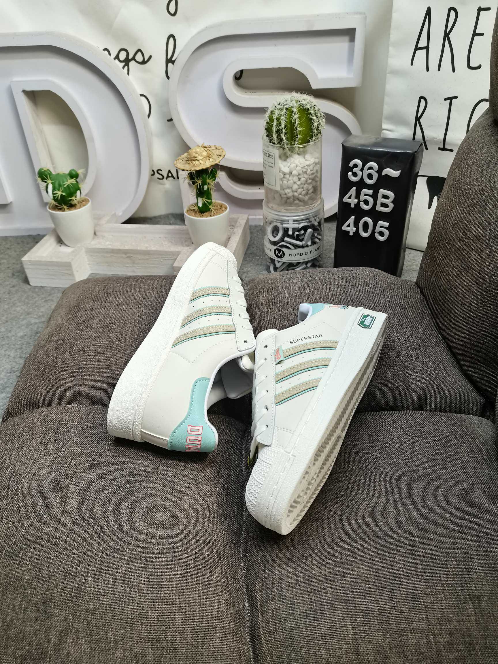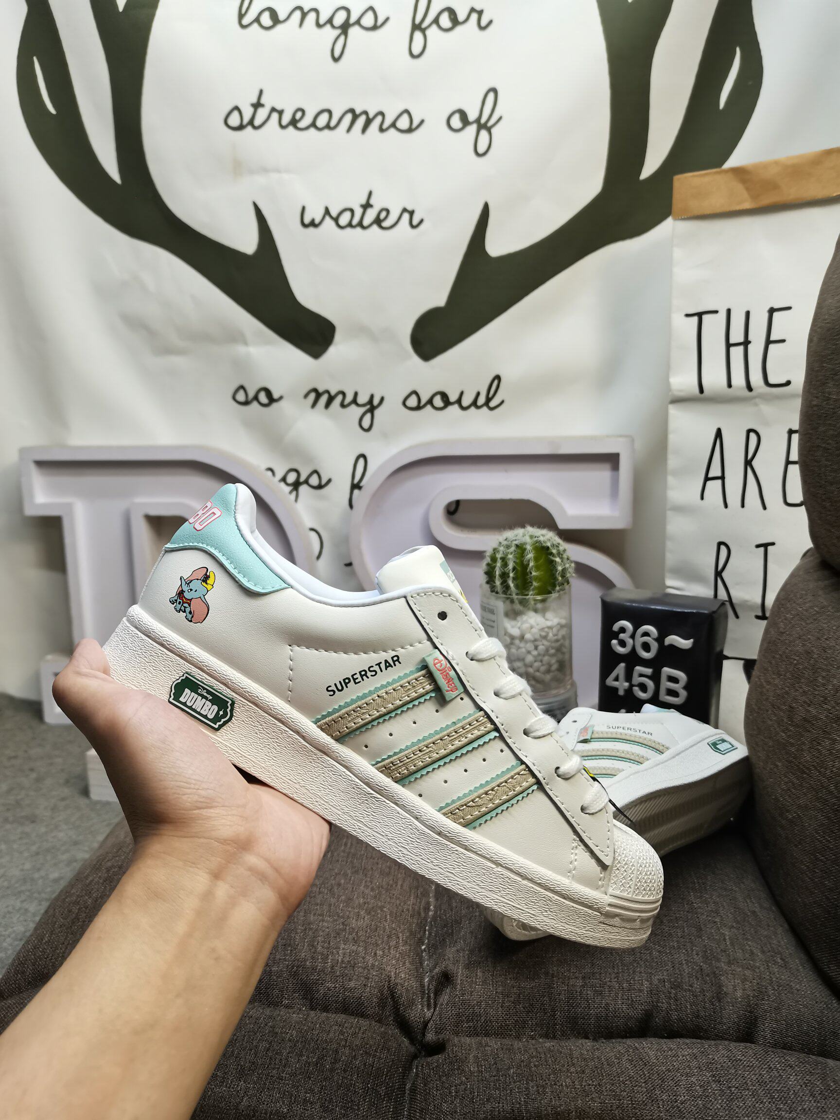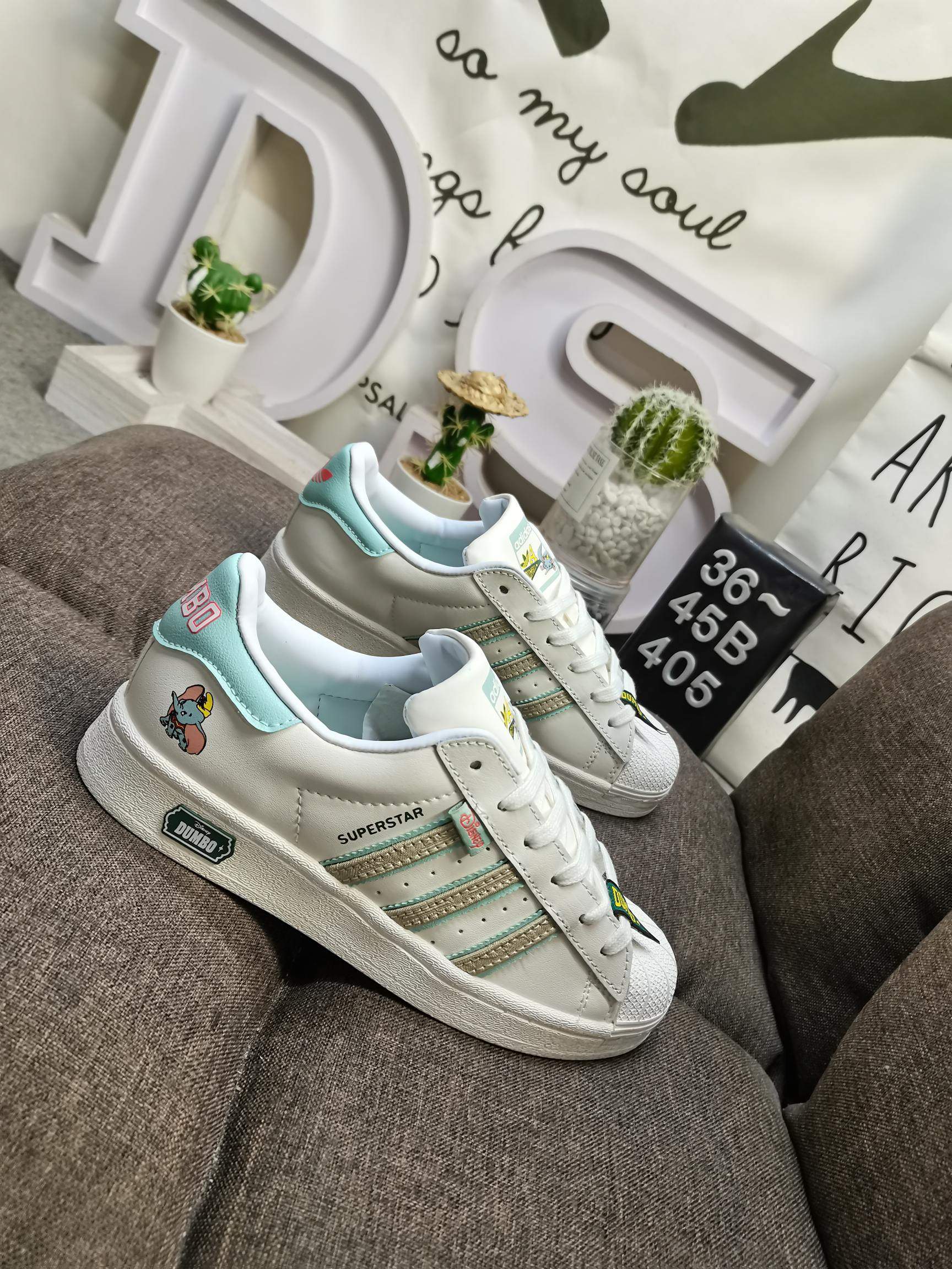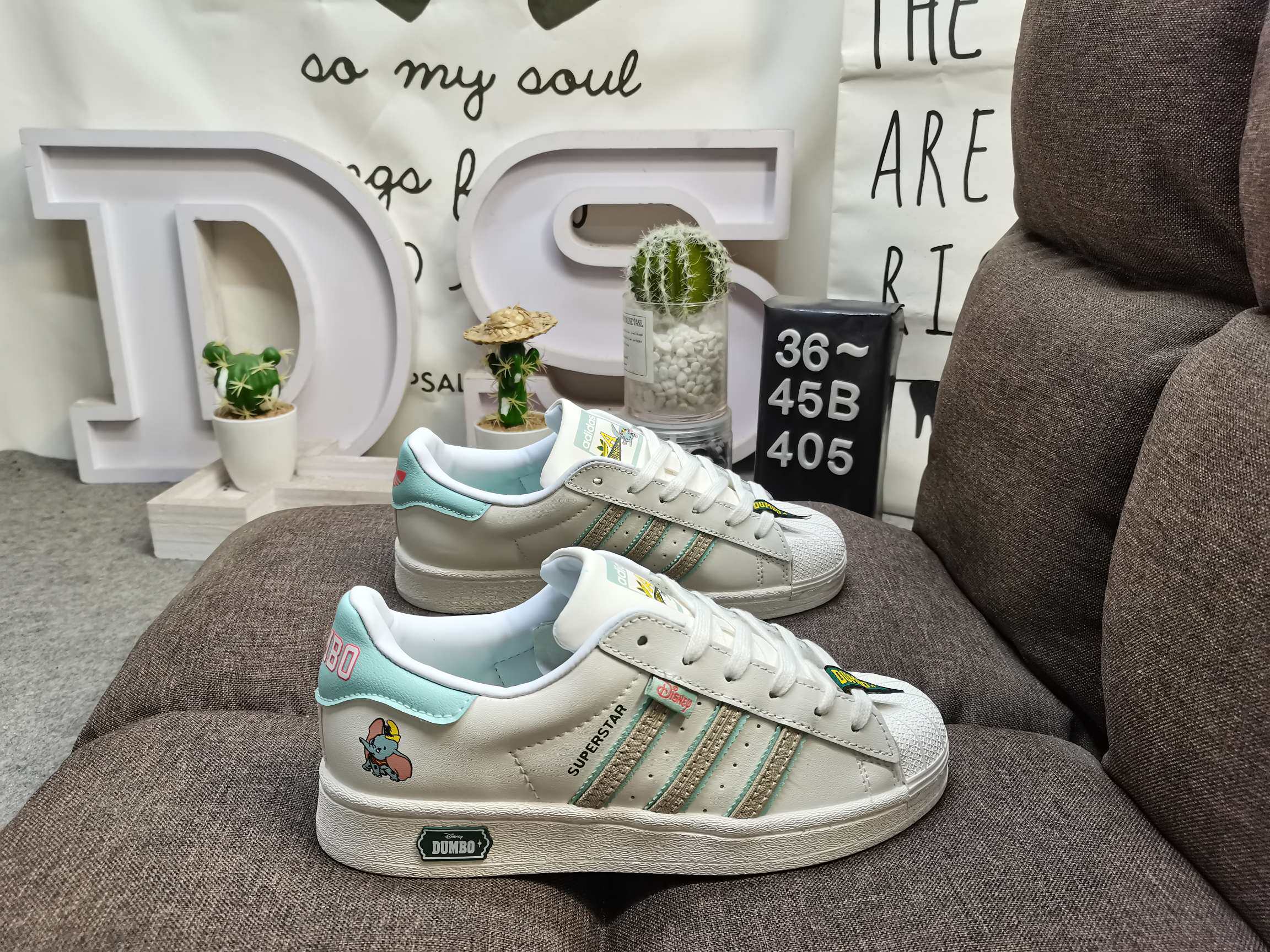 【头层牛皮】2024新款三叶草贝壳头小飞象白绿经典休闲运动板鞋
