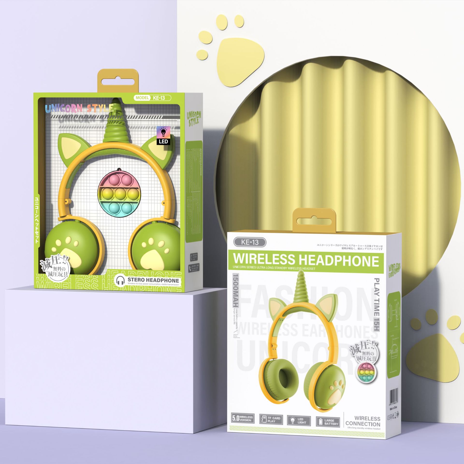 KE-13跨境爆款独角兽无线蓝牙头戴式发光耳机 解压硅胶 可插TF卡
