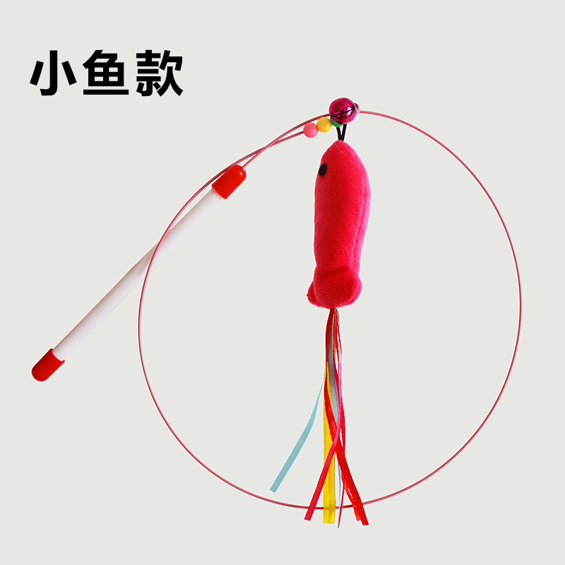 羽毛逗猫棒 逗猫咪竿杆 高韧弹性钢丝铃铛加长流苏绒小鱼玩具跨境