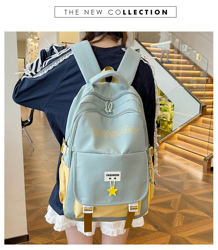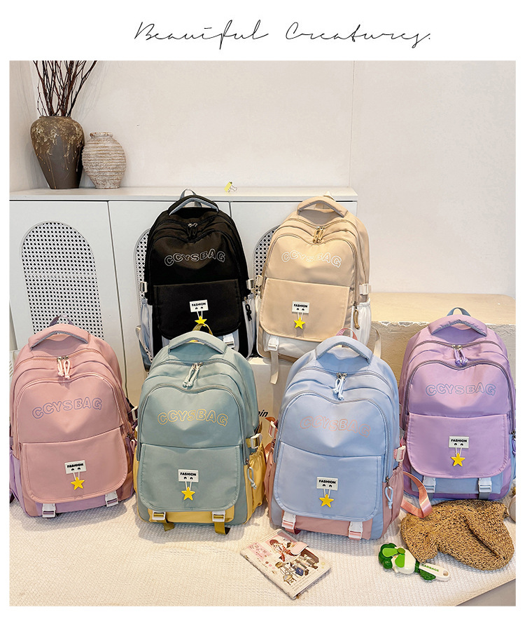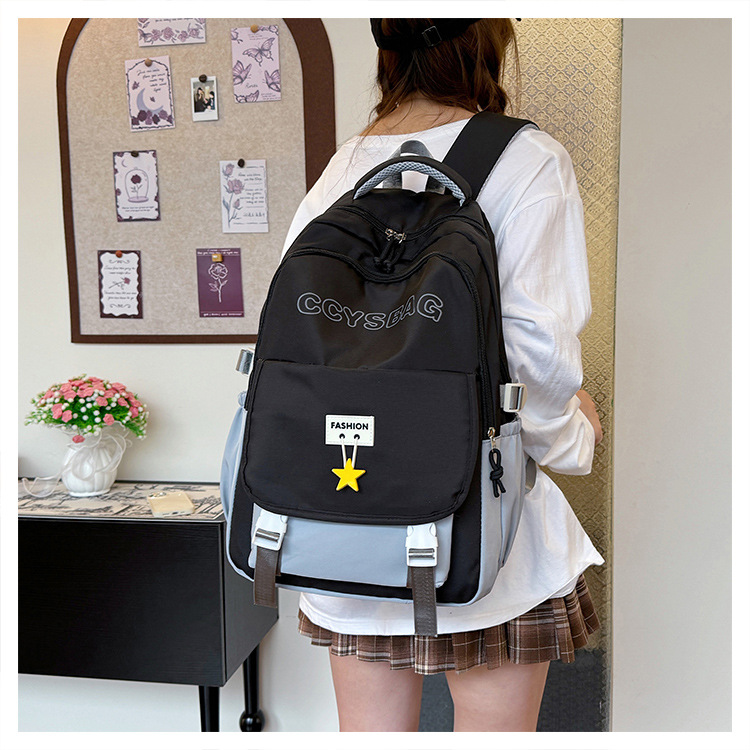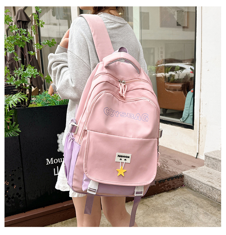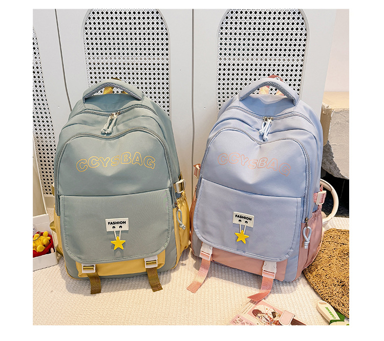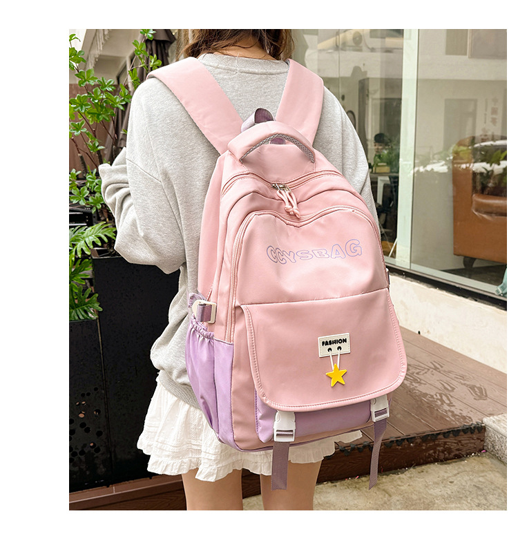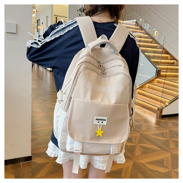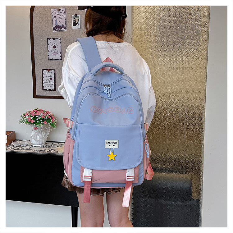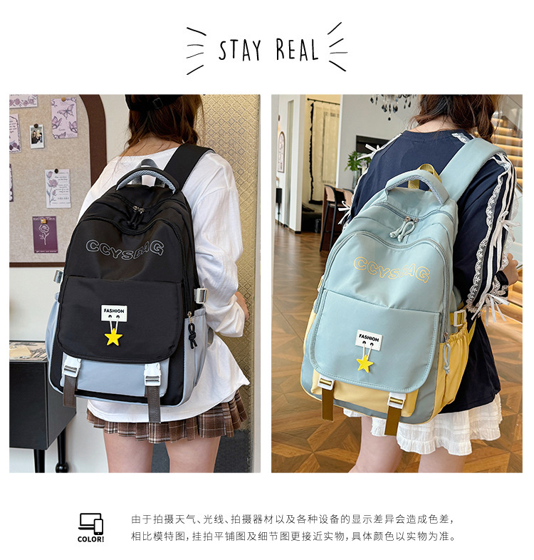 书包女生大学生高颜值高中学生初中生背包小学生撞色双肩包