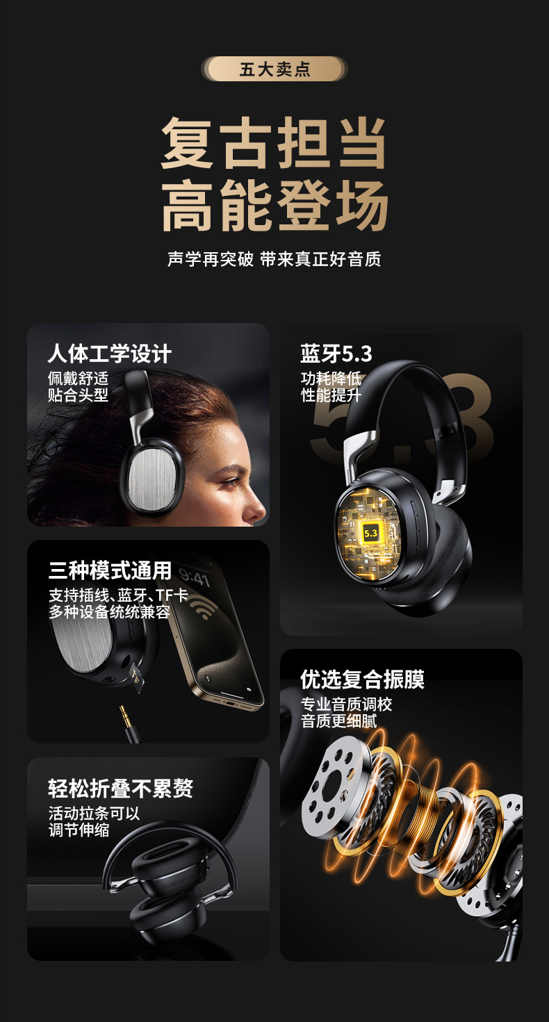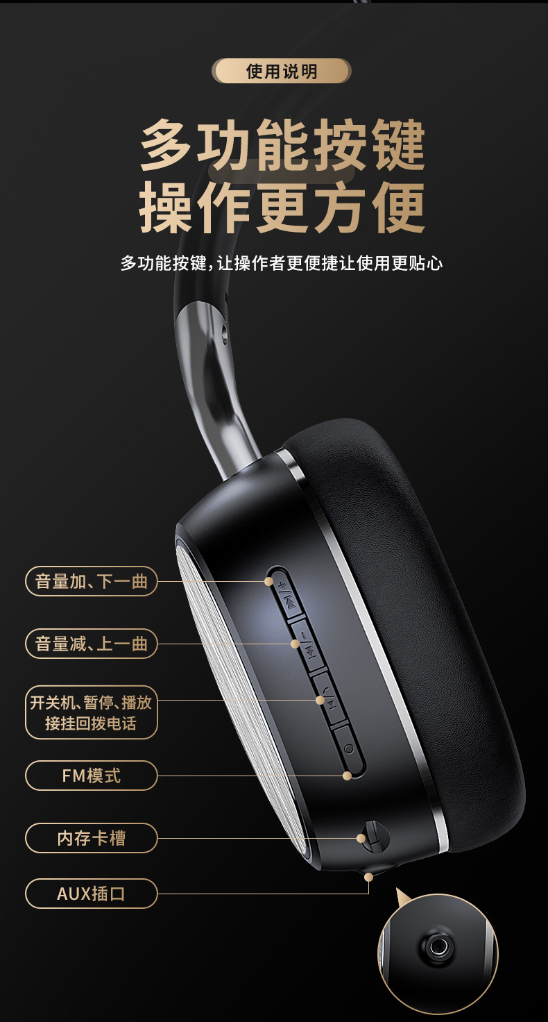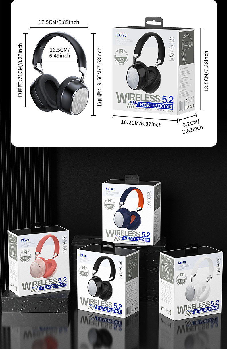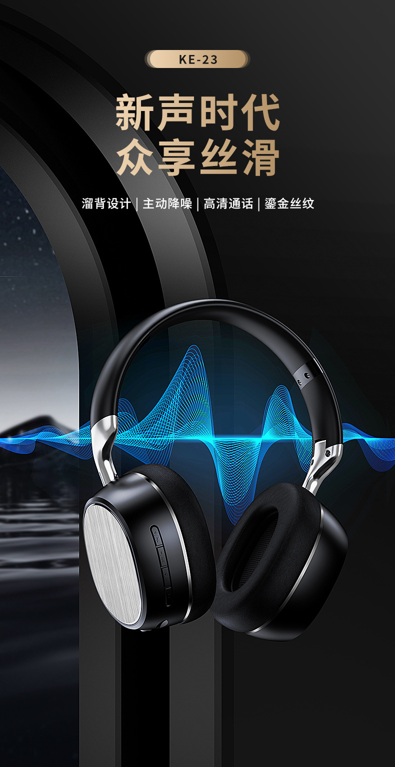 KE-23跨境新款 鎏金丝纹头戴式蓝牙耳机 全包耳高音质游戏无线