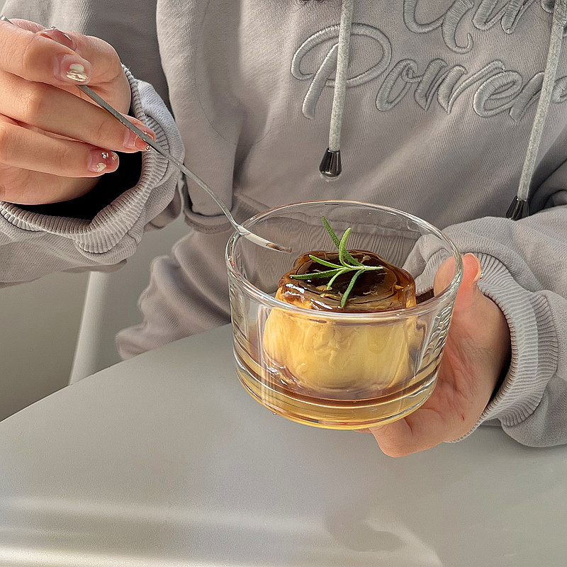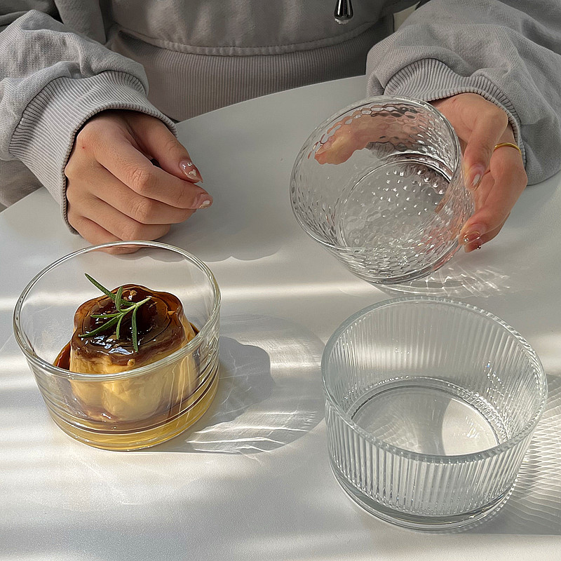 圆形锤纹玻璃碗水果沙拉碗家用儿童辅食碗高颜值甜品碗ins