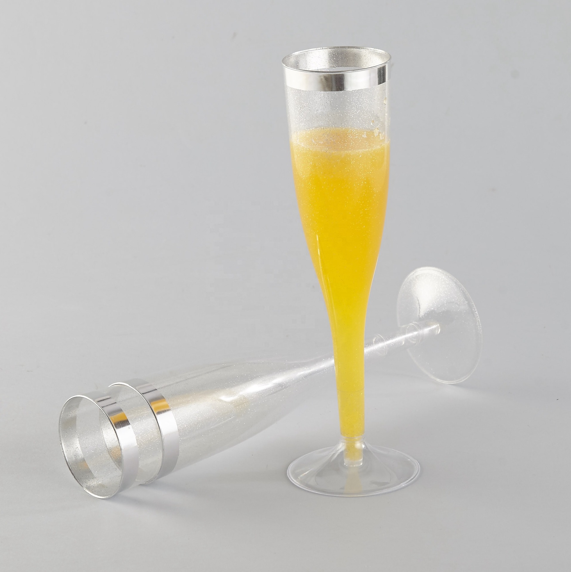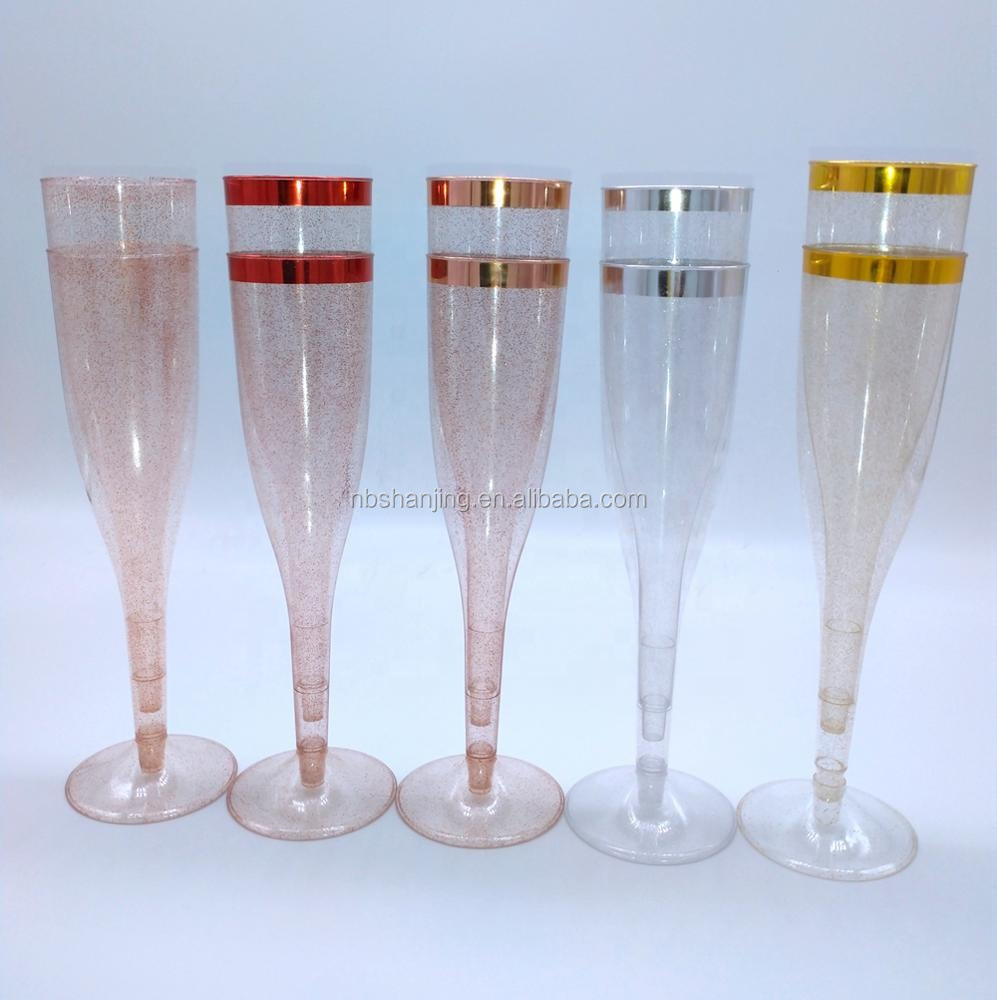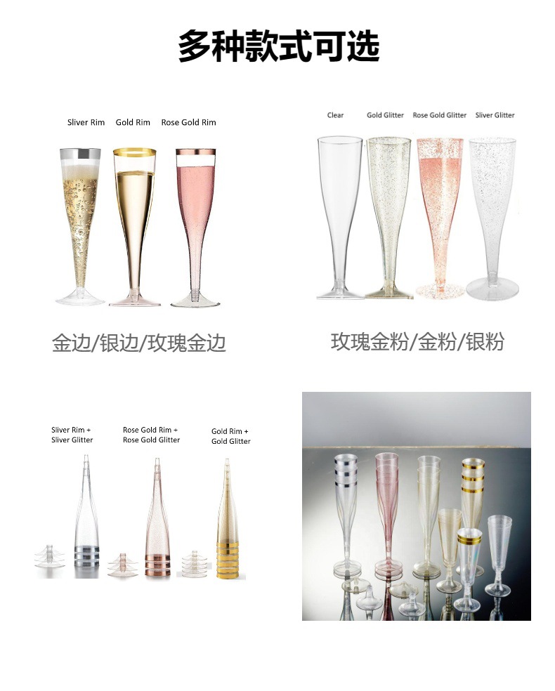 4.5oz盎司香槟杯一次性塑料香槟杯金色边红酒杯高脚杯马提尼玛格
