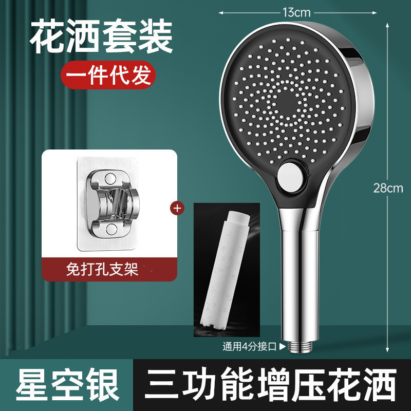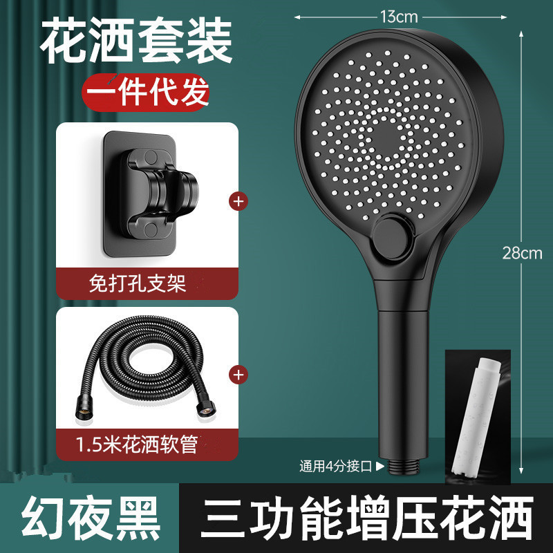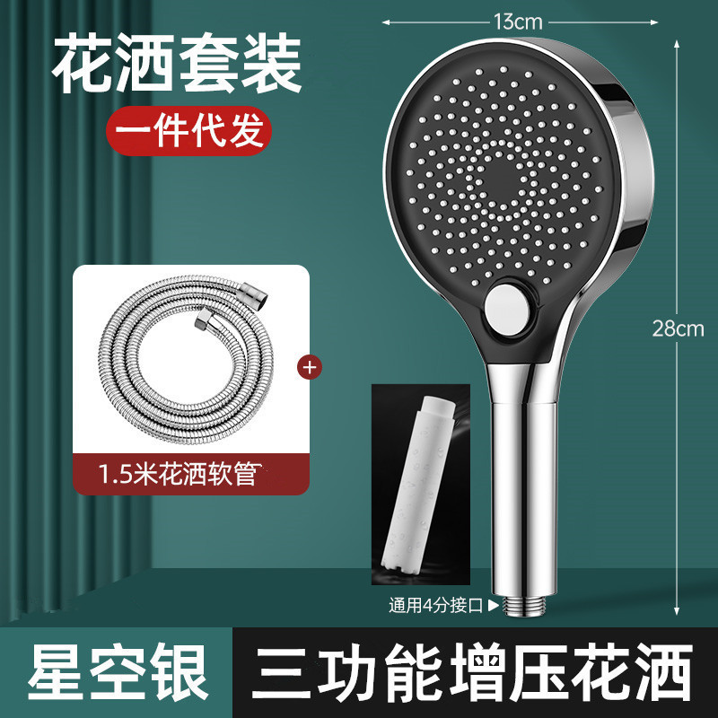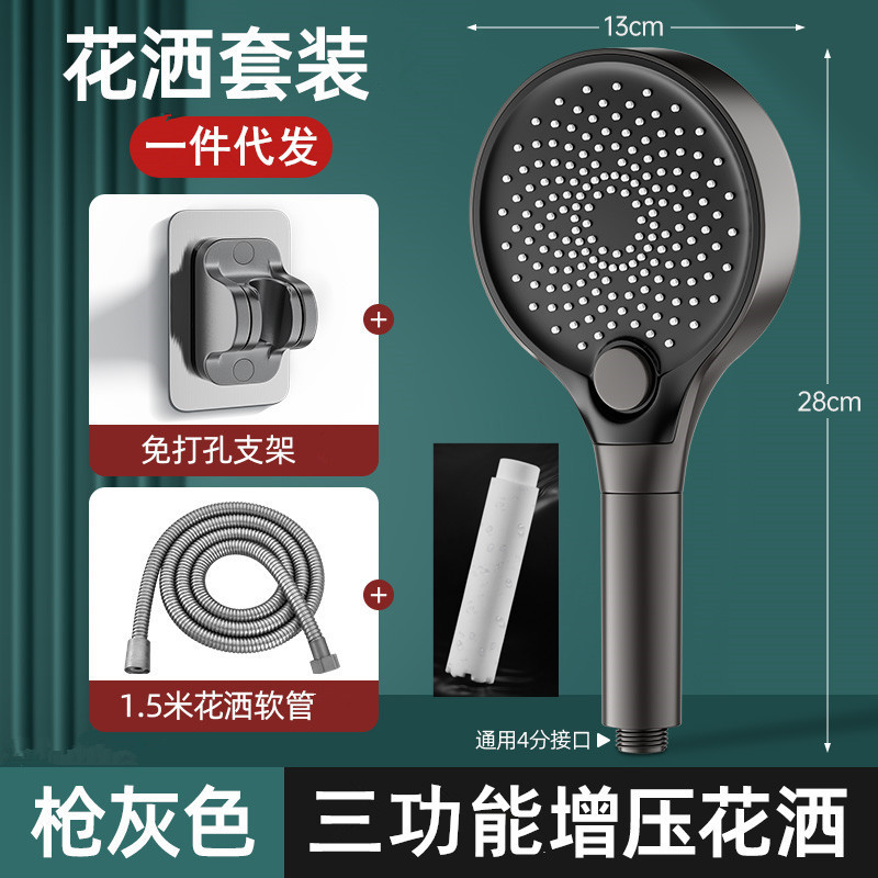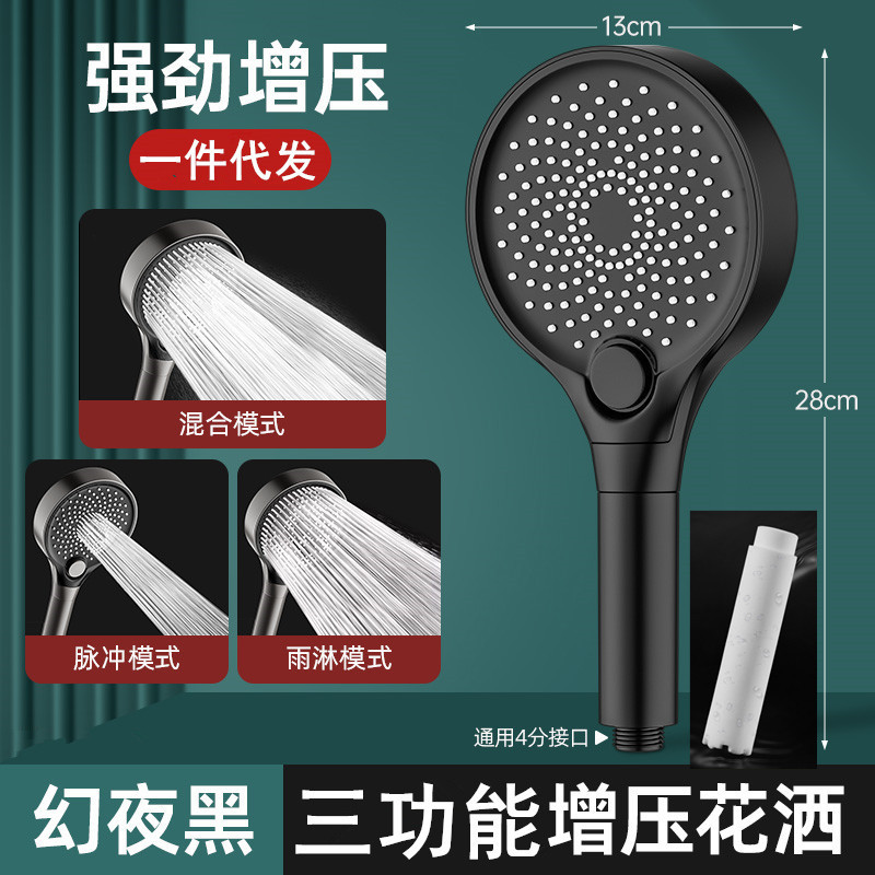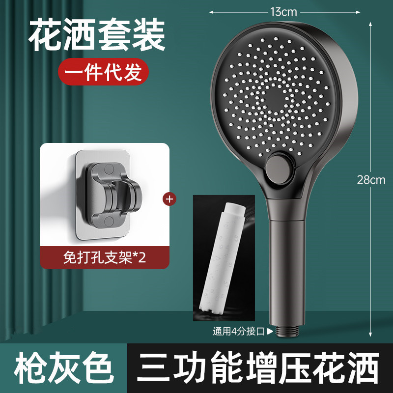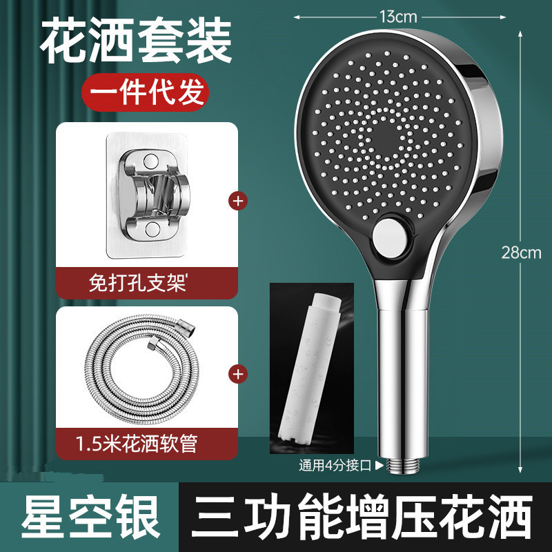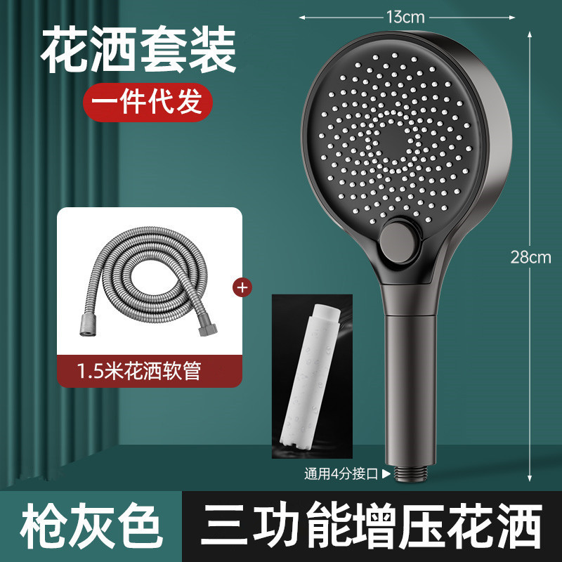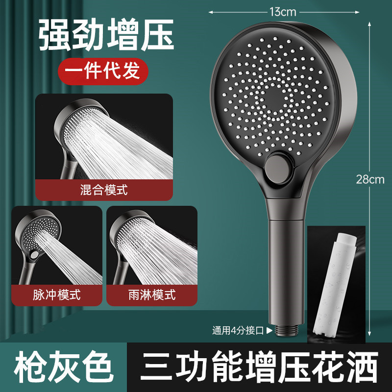 跨境一件代发增压花洒喷头强劲加压浴室家用洗澡淋浴头一孔三出水