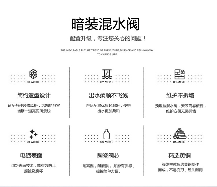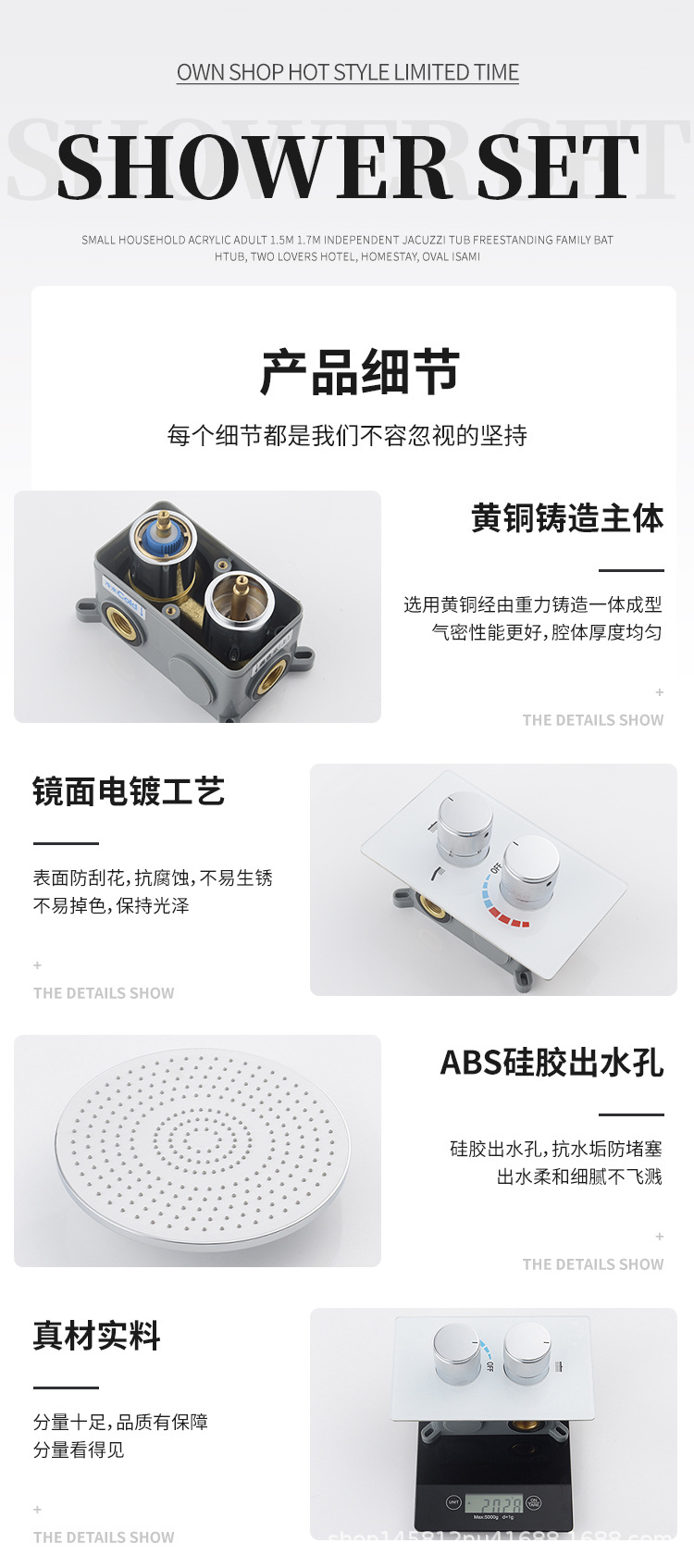 暗装花洒套装隐藏入墙式雨淋嵌入式全铜简约淋浴花洒全套跨境酒店