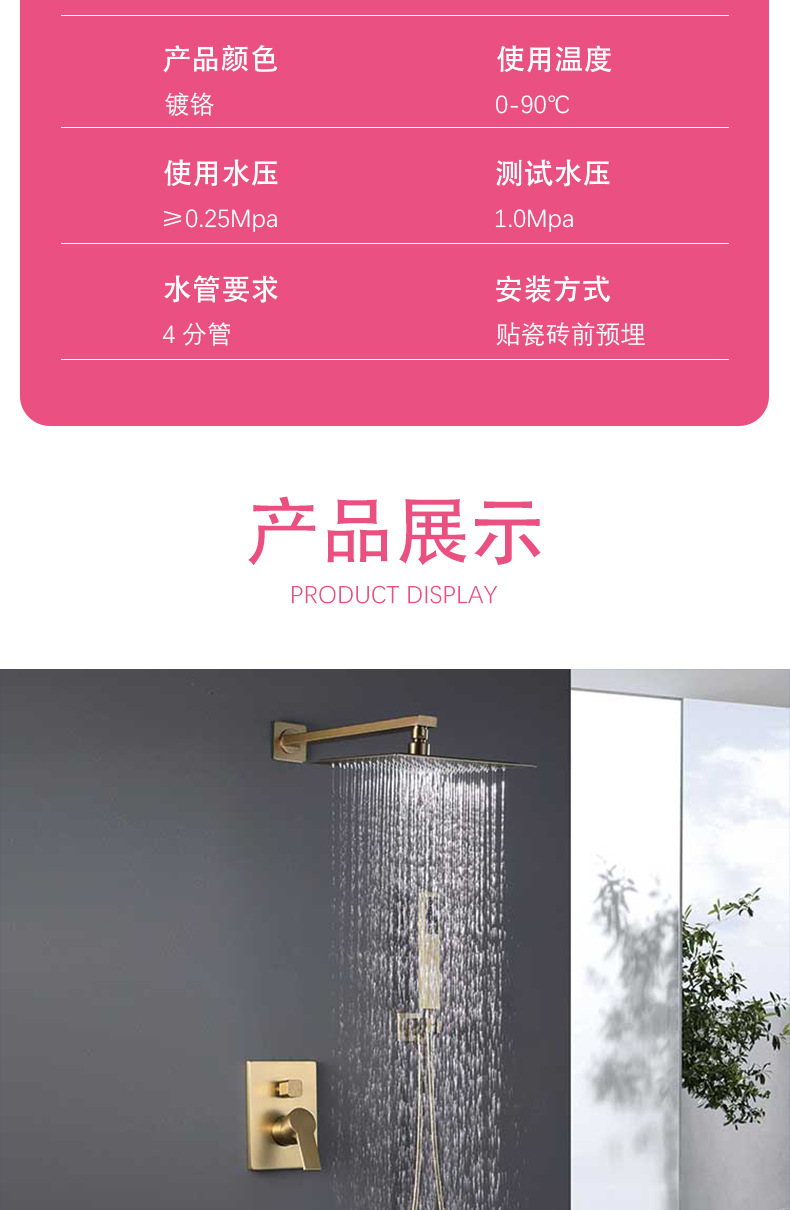 跨境双功能暗装花洒入墙式花洒套装暗民宿酒店双功能方形淋浴花洒