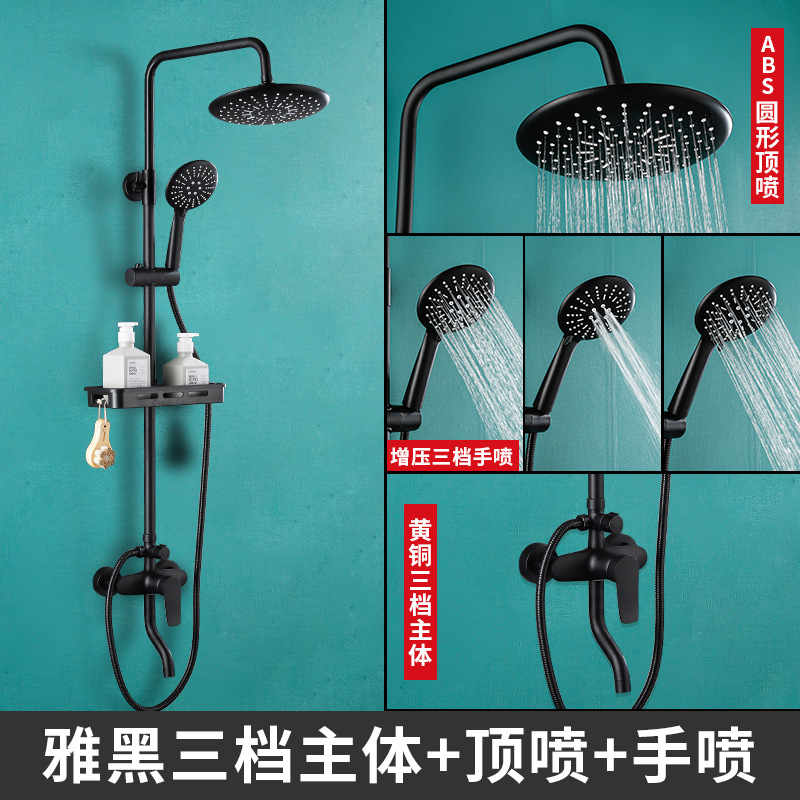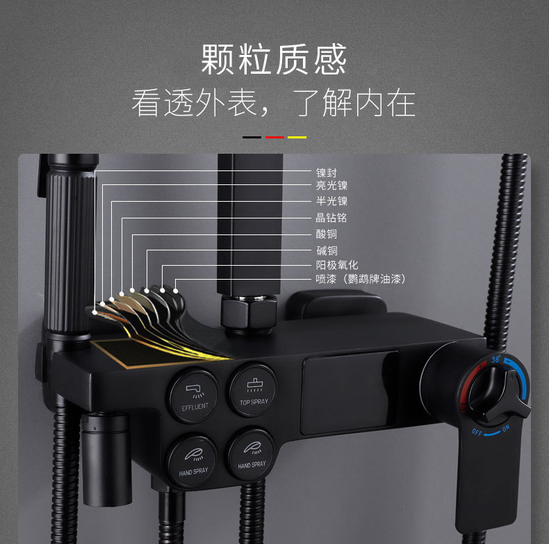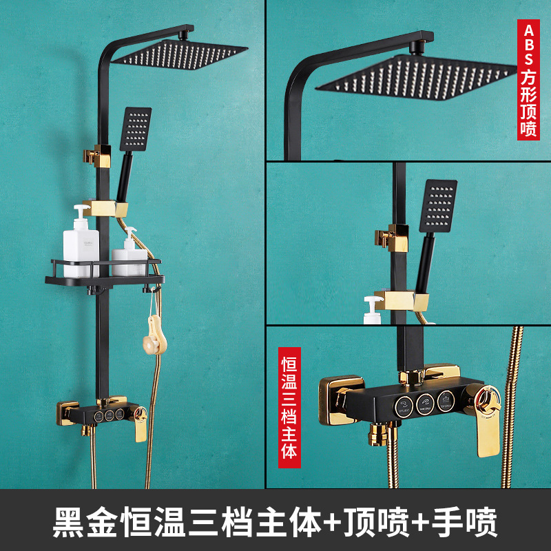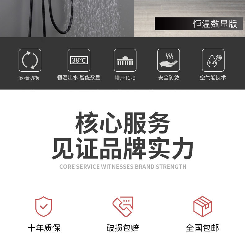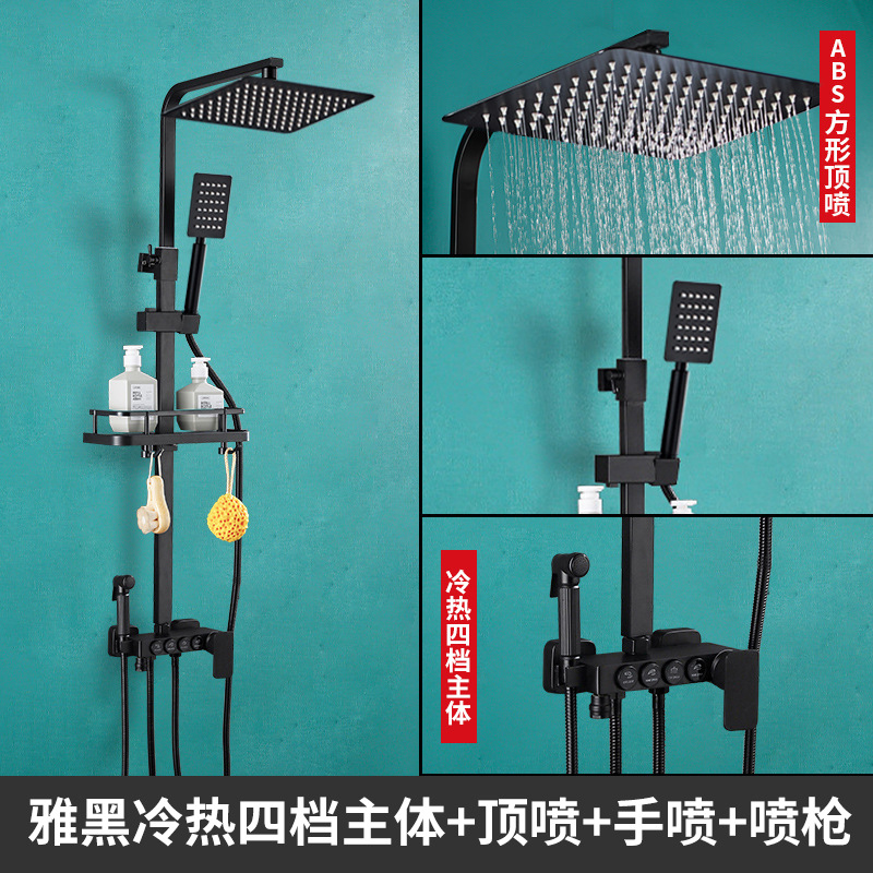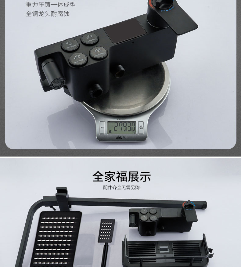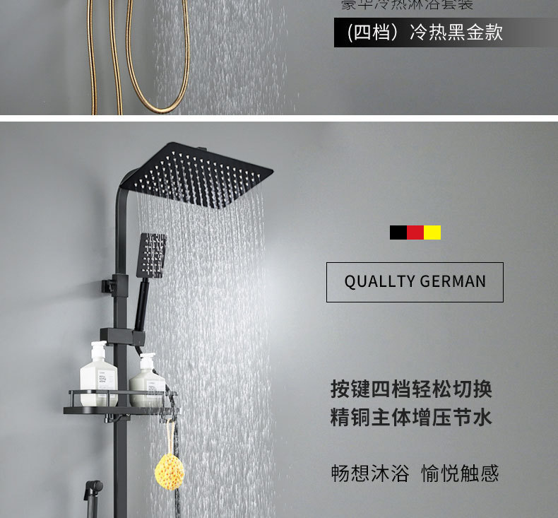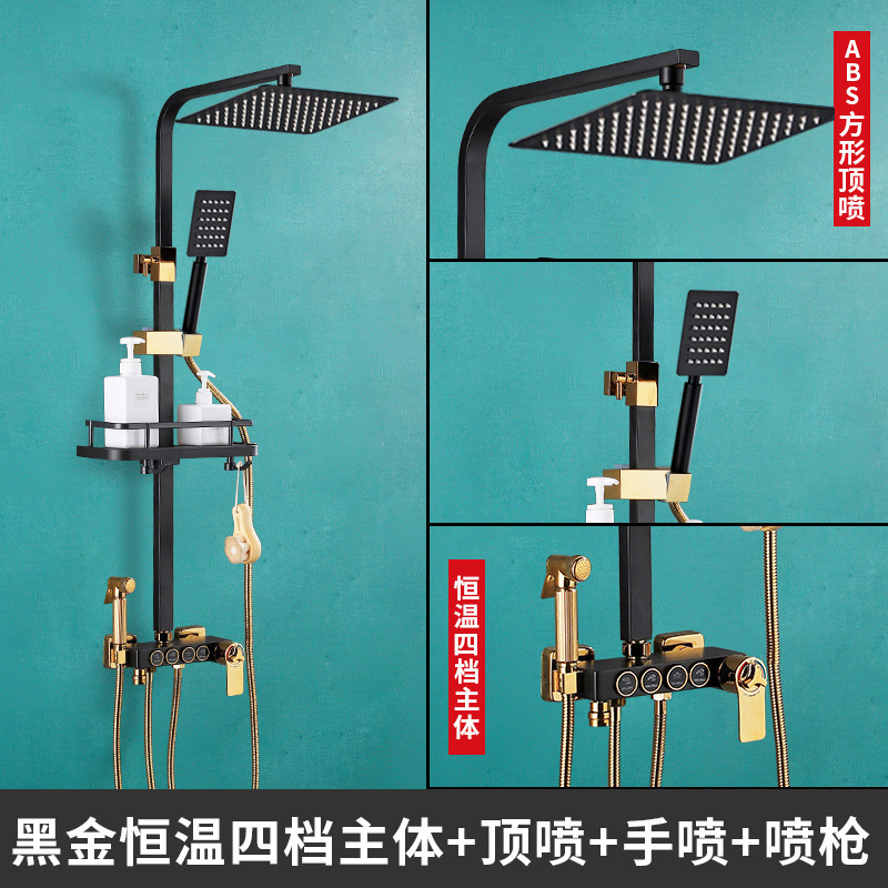跨境黑色花洒数显恒温淋浴套装全铜浴室增压新款四档多功能通用