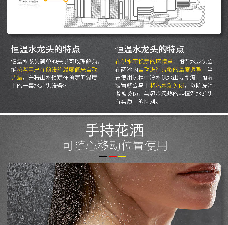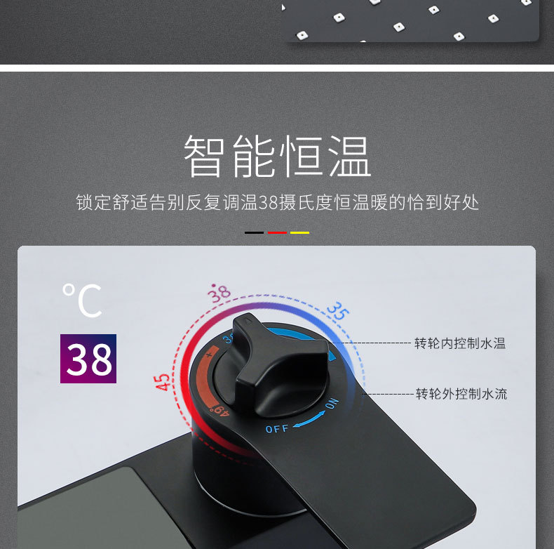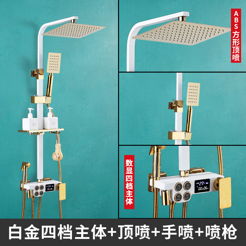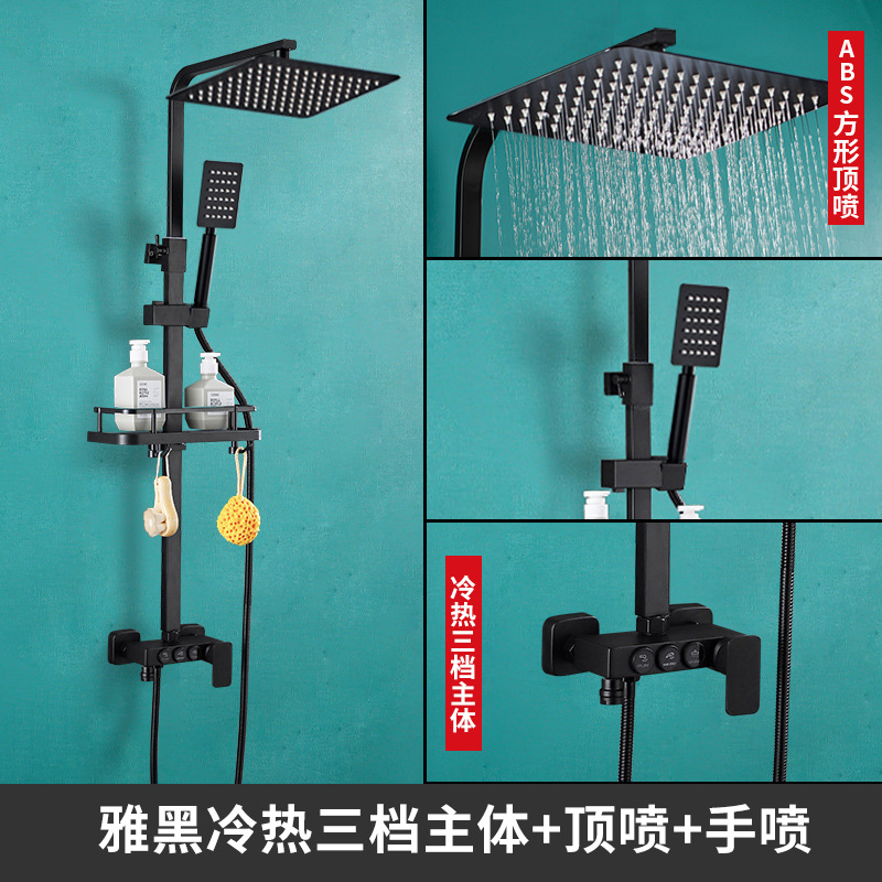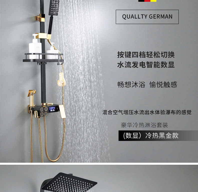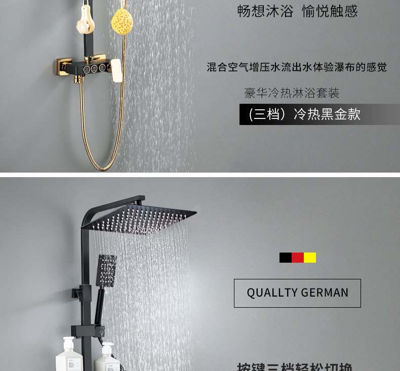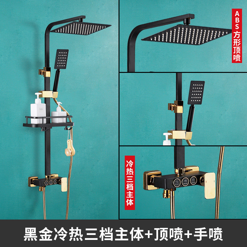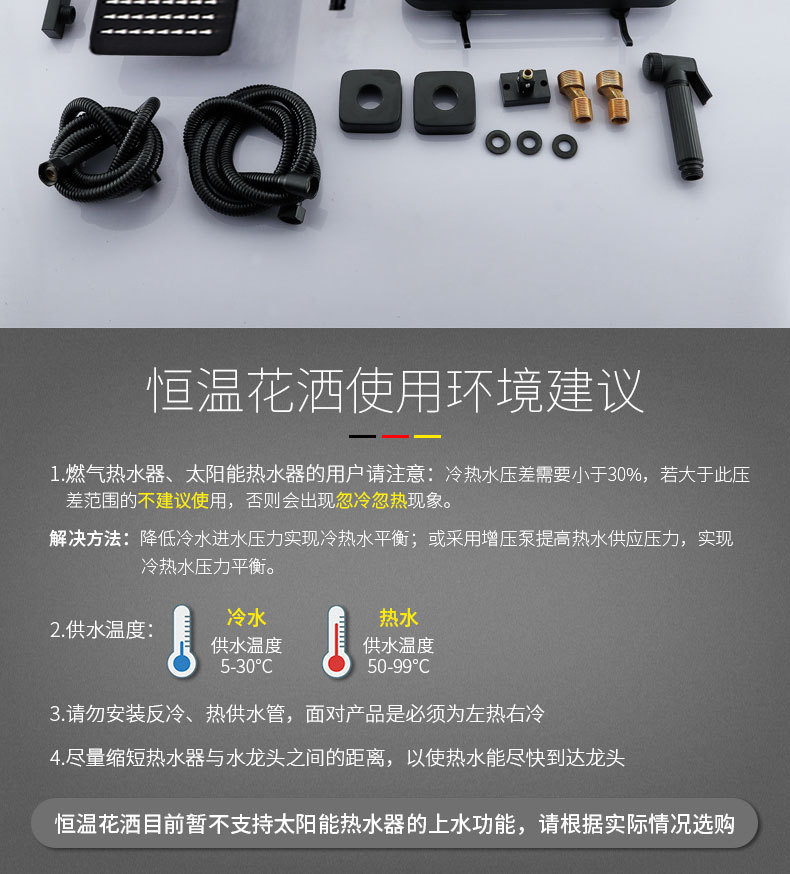 跨境黑色花洒数显恒温淋浴套装全铜浴室增压新款四档多功能通用