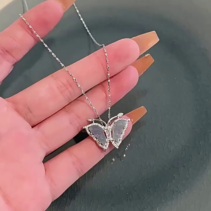 饰品小众高级感锁骨链网红同款颈链清冷风冰晶锆石蝴蝶项链女批发