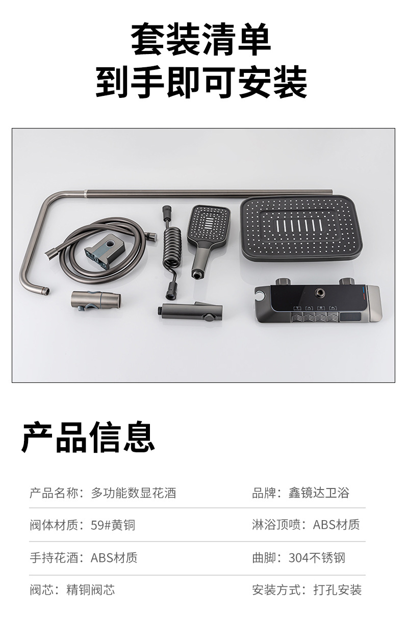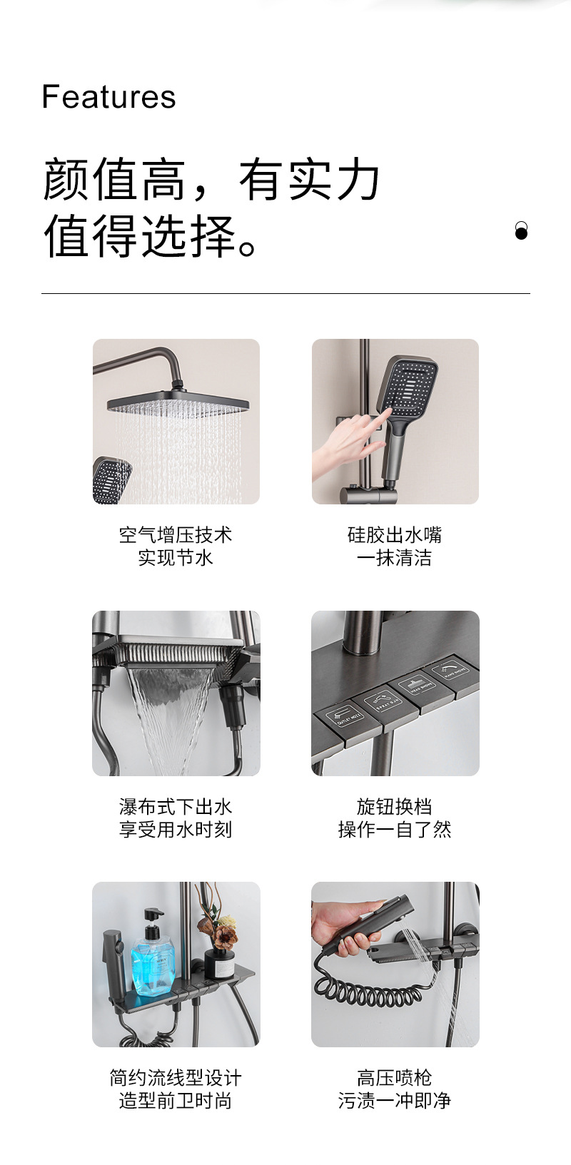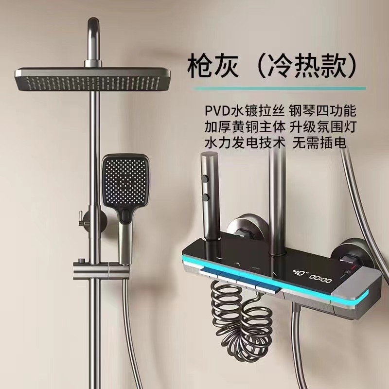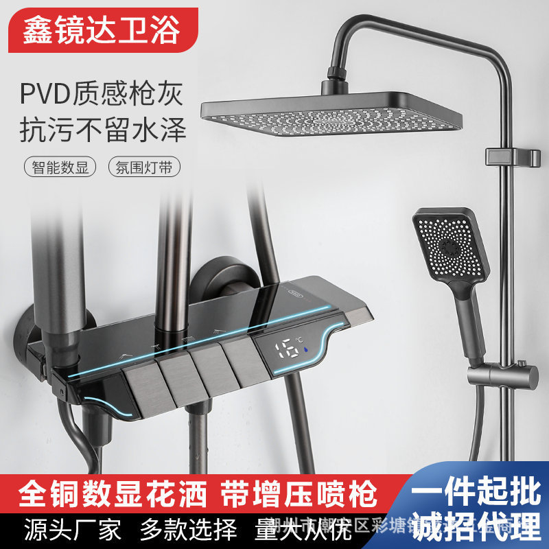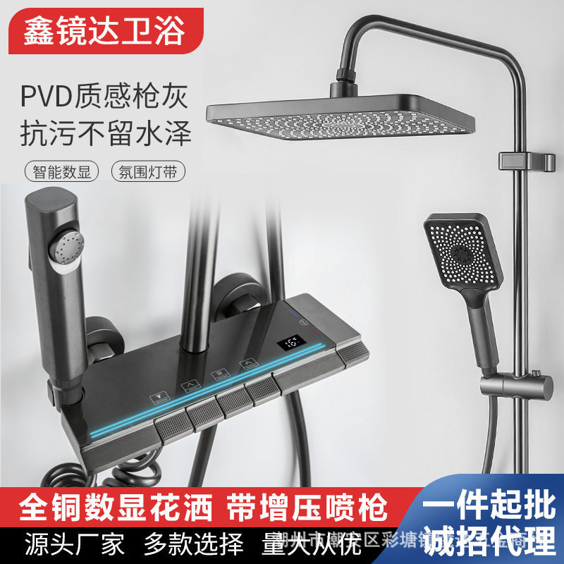 跨境全铜数显淋雨淋浴花洒套装恒温增压淋浴器喷头枪灰热水器厂家