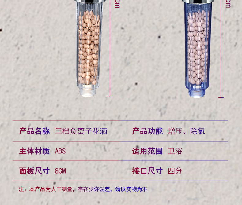 增压手持淋浴花洒负离子除氯净水莲蓬头四分通用三档调节透明喷头