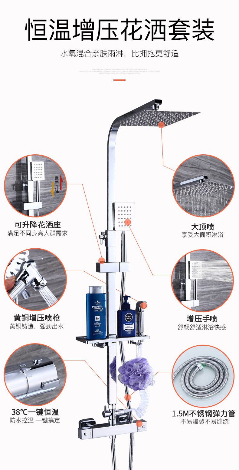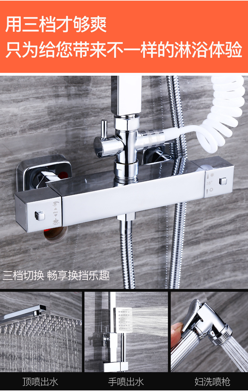 全铜家用卫生间恒温淋浴花洒套装外贸冷热混水阀龙头增压喷枪跨境