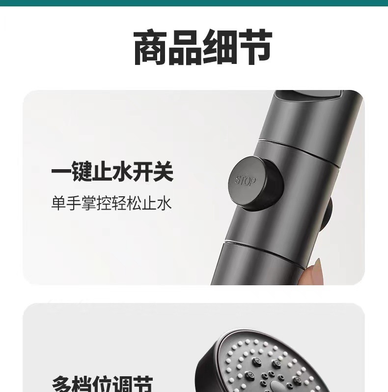 黑色五档增压花洒喷头手持大出水浴室淋浴一键止水手持黑武士花洒