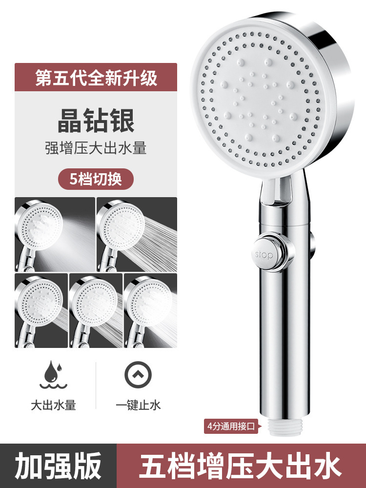 喷枪款淋浴增压花洒6档ABS手持简易花洒套装宿舍浴室4色花洒