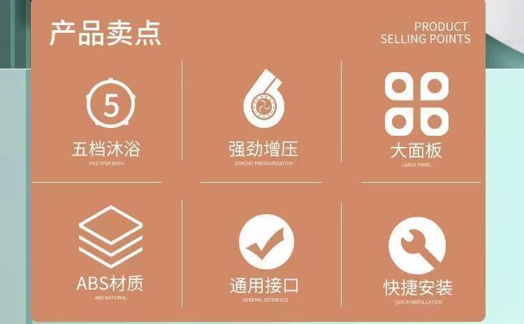 黑武士五档增压花洒喷头学生宿舍淋浴手持洗澡强劲增压便携莲蓬头