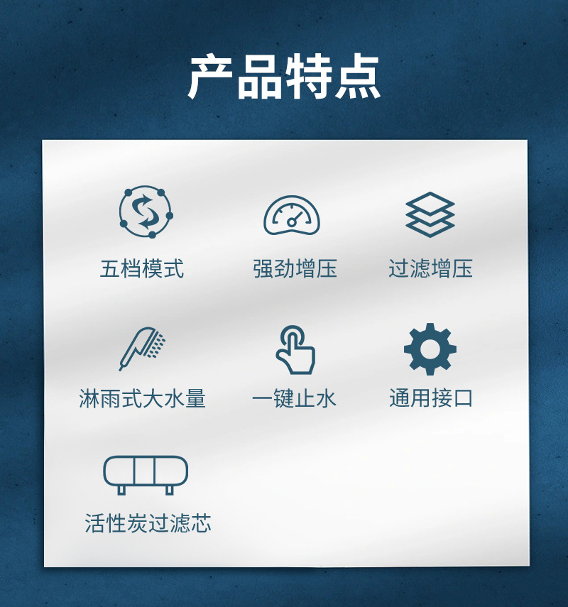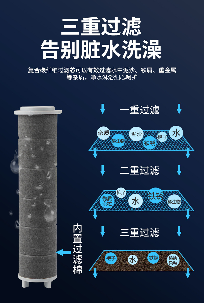 强劲增压净化美肤过滤五档调档复合纤维过滤芯家用卫浴手持花洒