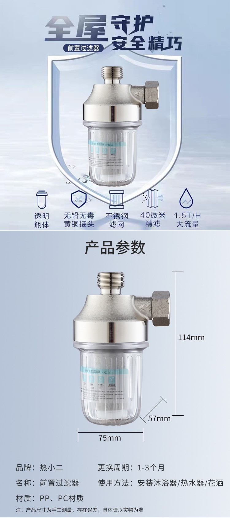 电热水器前置过滤器家用可洗滤芯大流量进水洗衣机花洒阻垢净水器