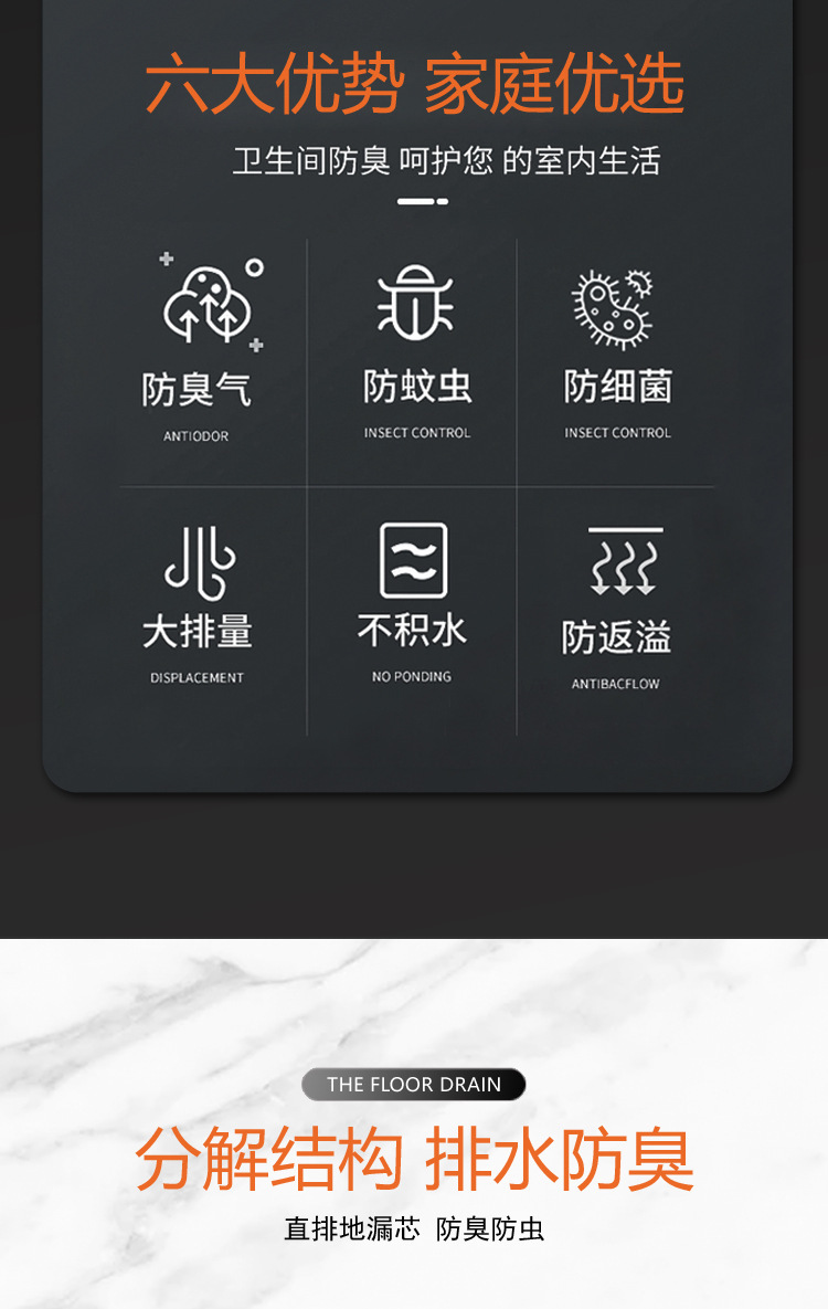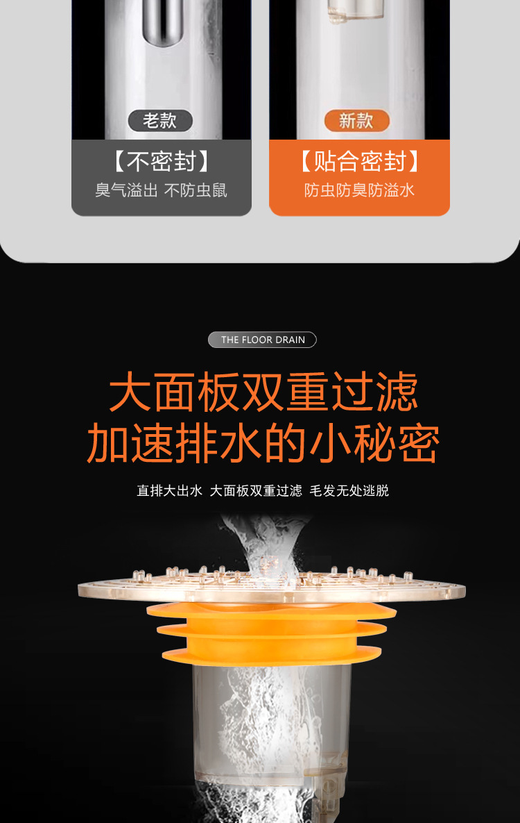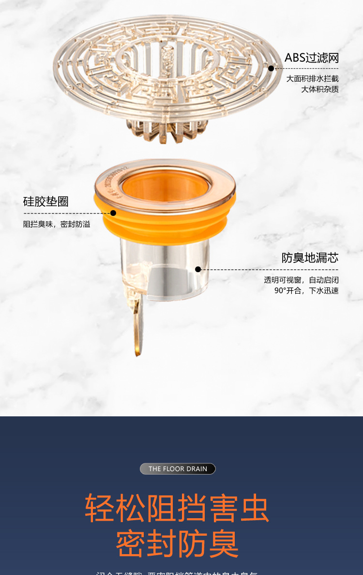 新款防虫防臭地漏芯过滤防堵快排卫生间下水浴室淋浴房盖子套装