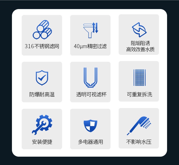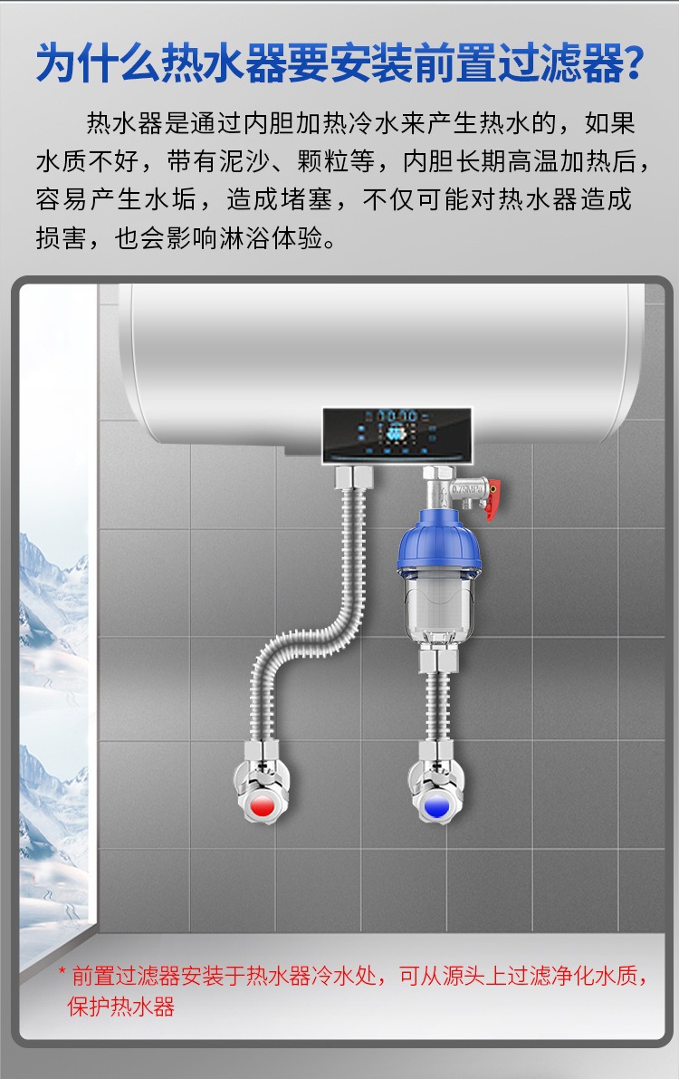 家用热水器前置过滤器免换芯滤网前置过滤器洗衣机花洒不锈钢滤芯